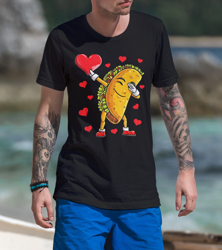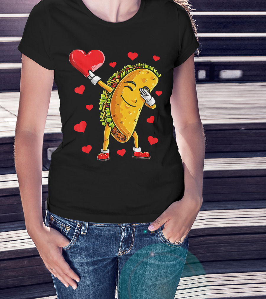 Dabbing Taco With Heart Valentines T-Shirt