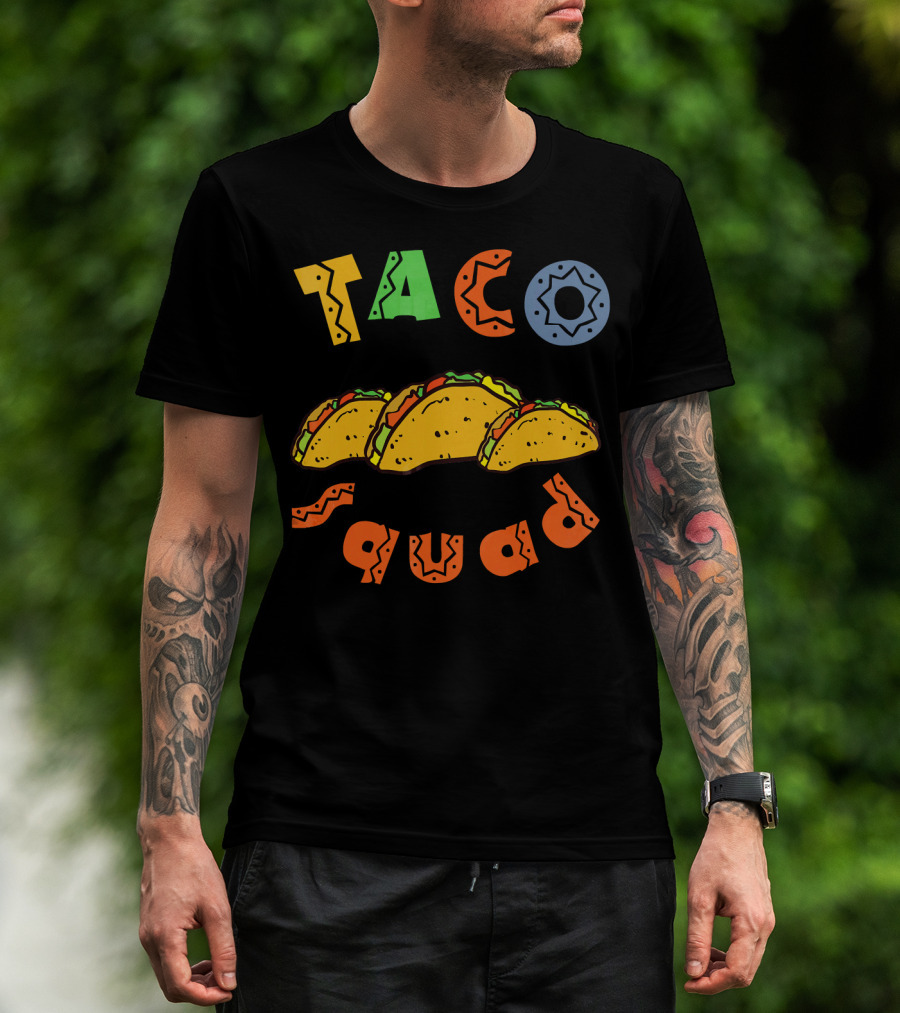 Taco Squad Colorful Lettering With Three Tacos T-Shirt