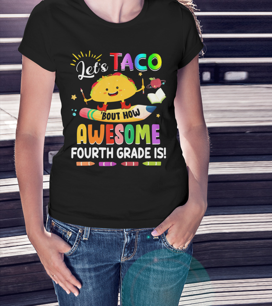Let's Taco Bout How Awesome Fourth Grade Is Crayons Taco Pencil Book Apple T-Shirt