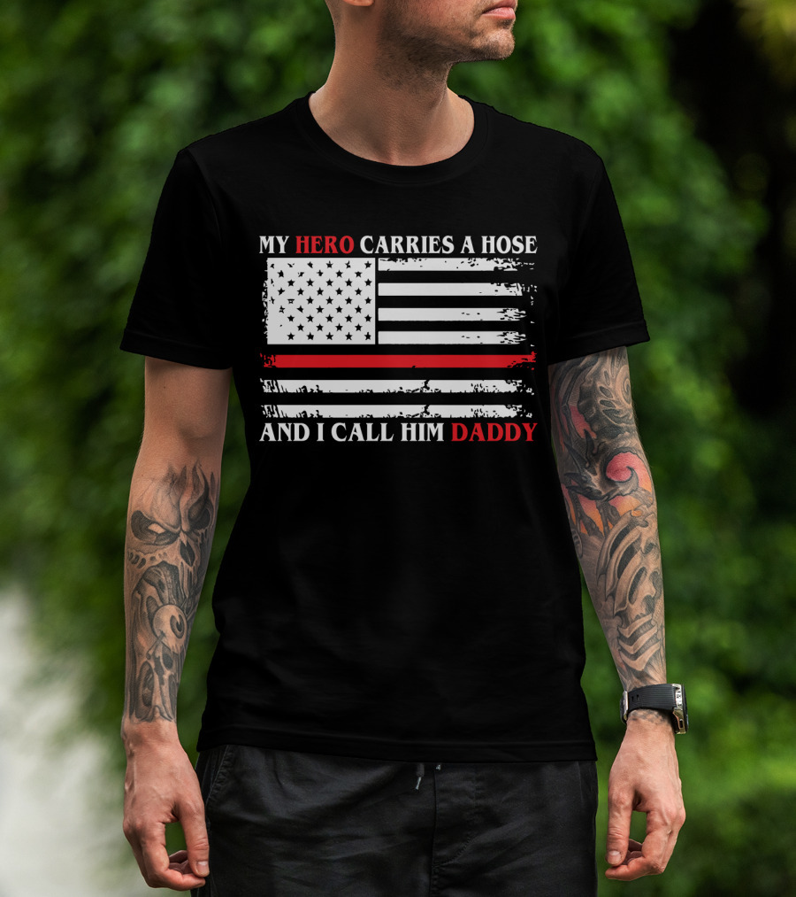 My Hero Carries A Hose And I Call Him Daddy American Flag T-Shirt