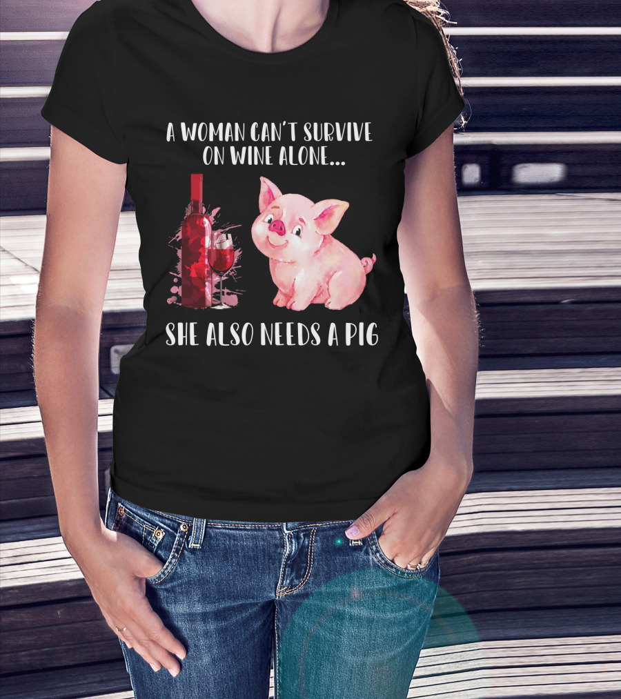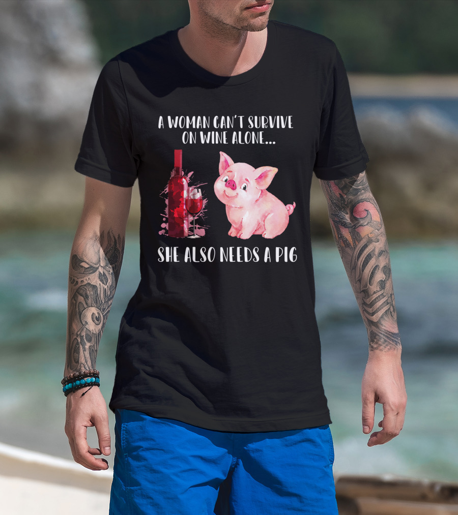 A Woman Can’t Survive On Wine Alone She Also Needs A Pig T-Shirt