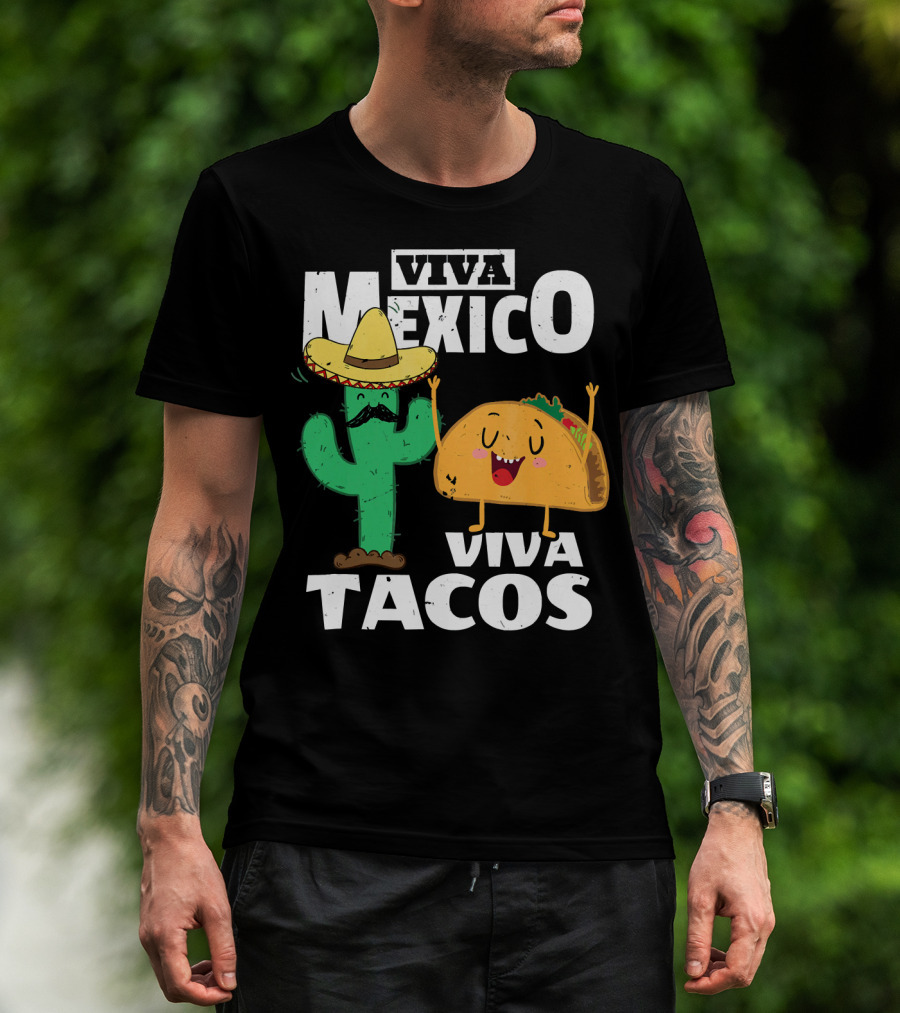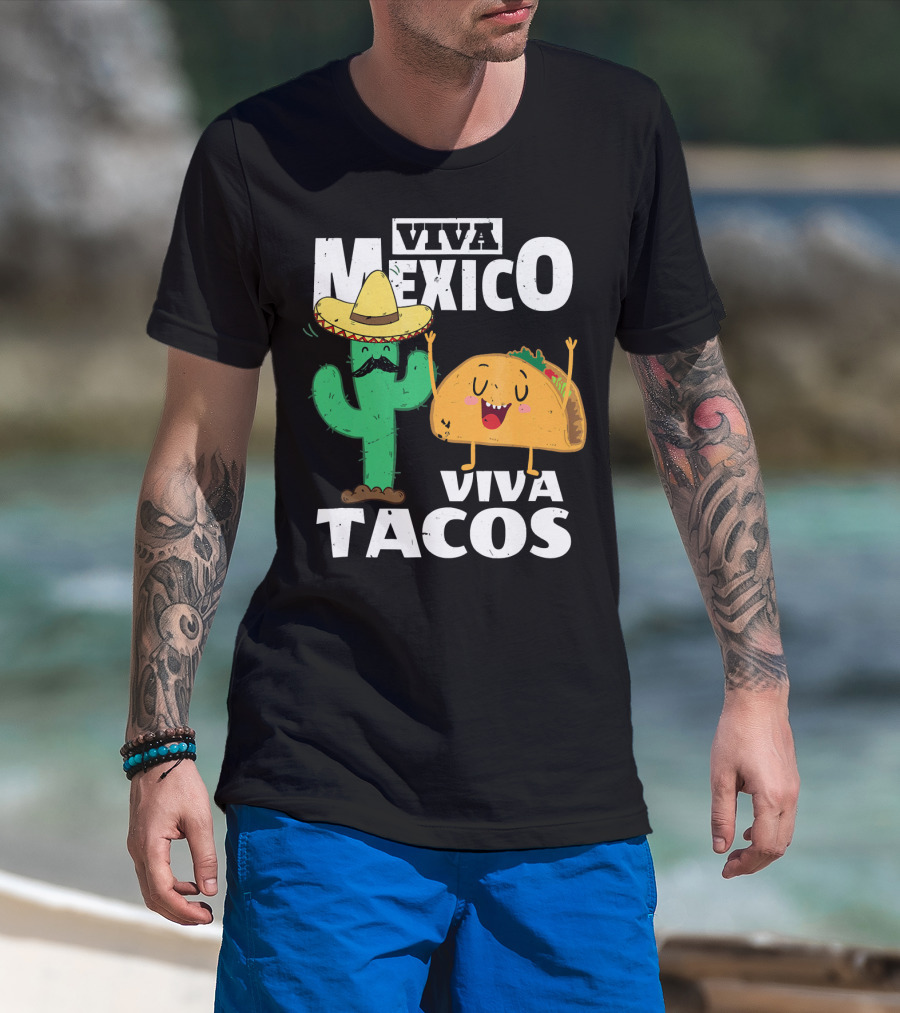 Viva Mexico Viva Tacos Cactus Sombrero T-Shirt