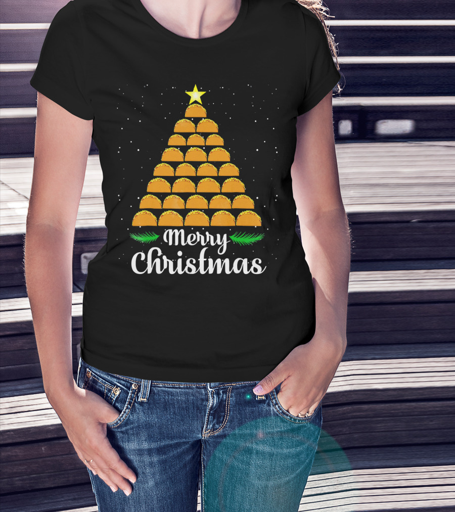 Merry Christmas Taco Tree With Star And Snowflakes T-Shirt