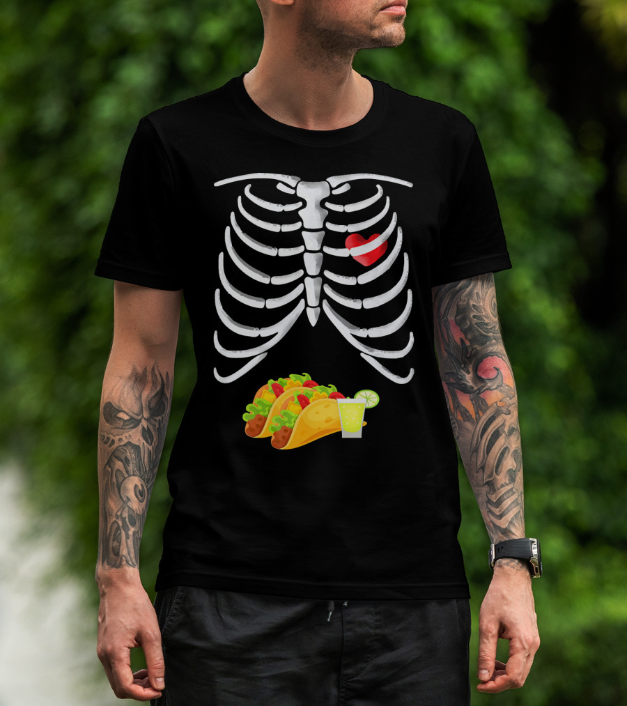 Tacos And Tequila Skeleton X Ray Pregnant With Heart T-Shirt