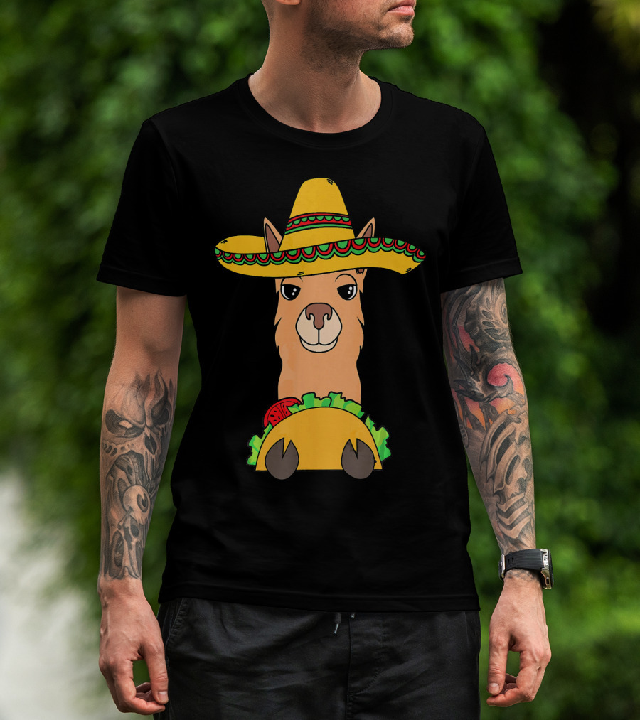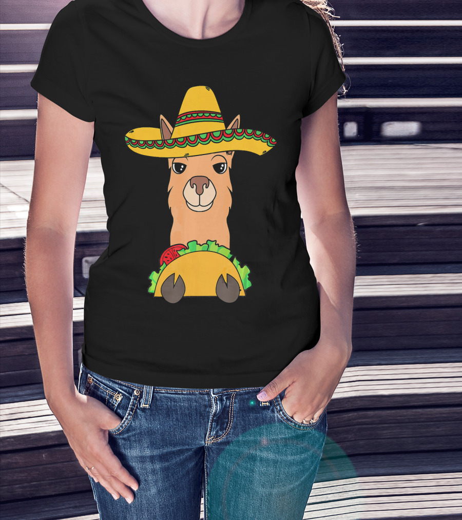 Llama Eating Taco Sombrero Cool Mexican T-Shirt