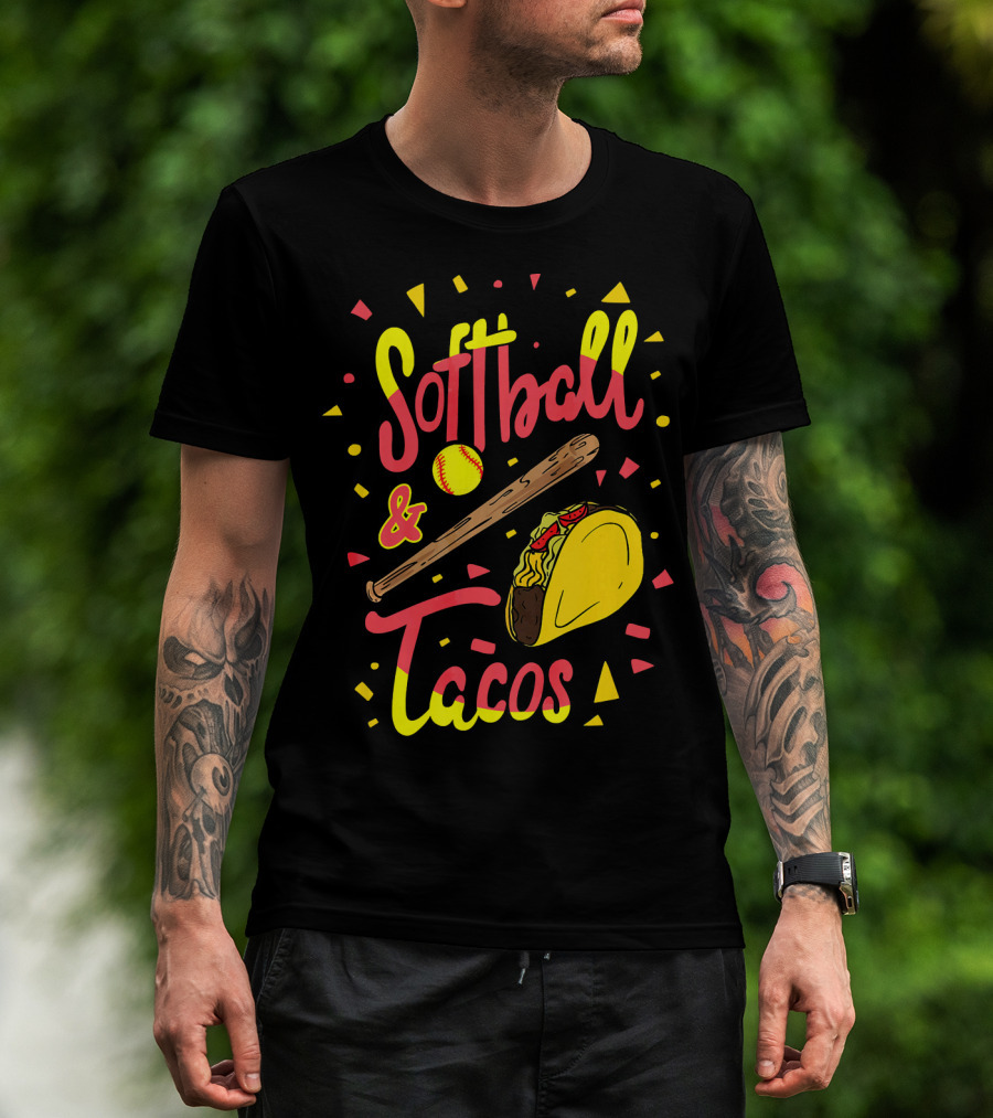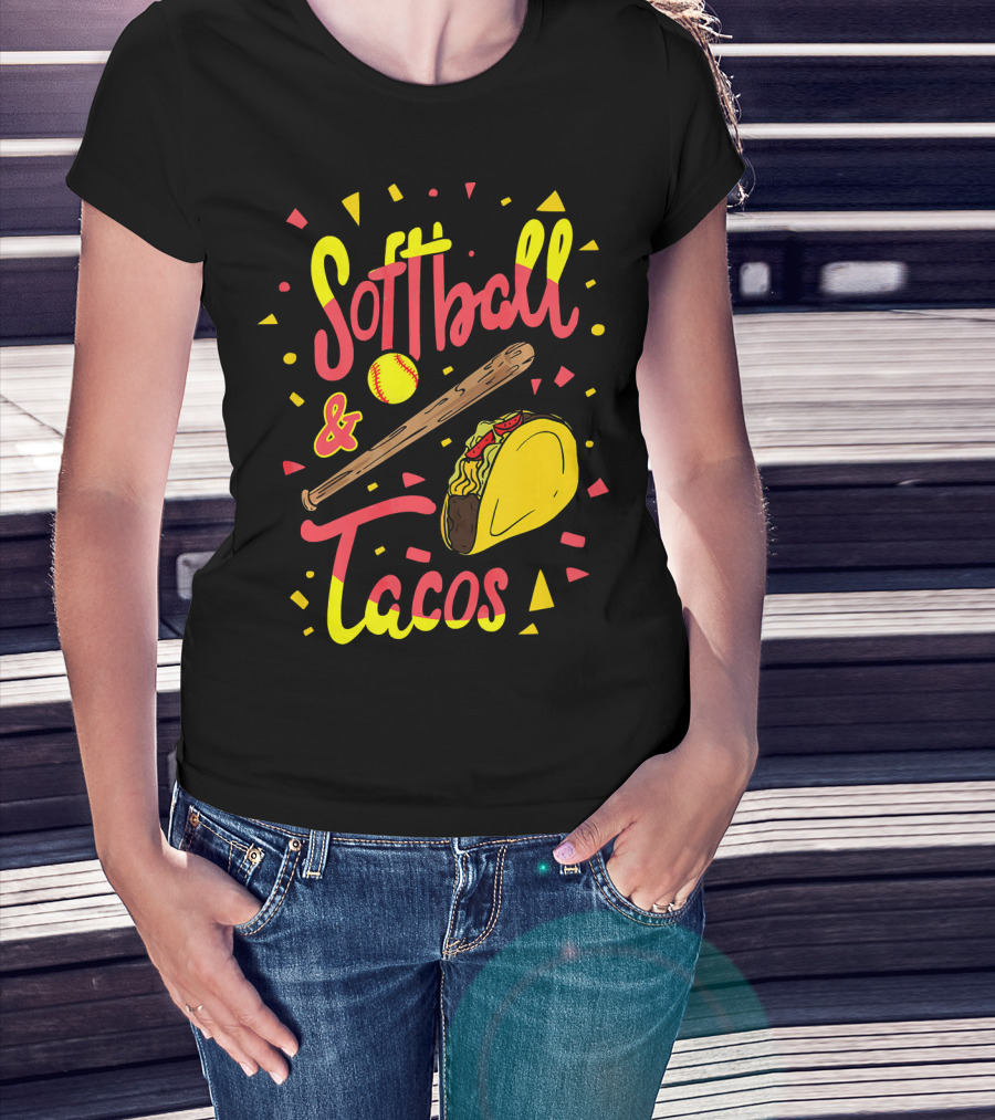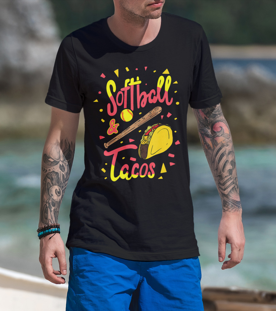 Softball And Tacos Funny Taco And Mexican Softball Bat And Ball Icons T-Shirt