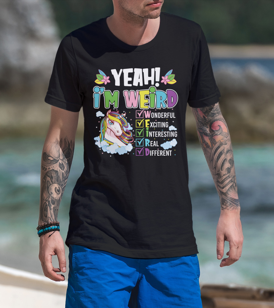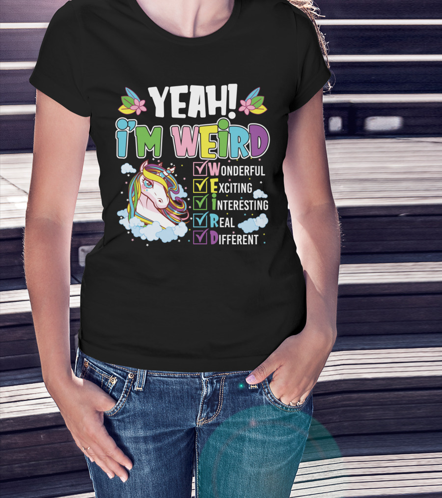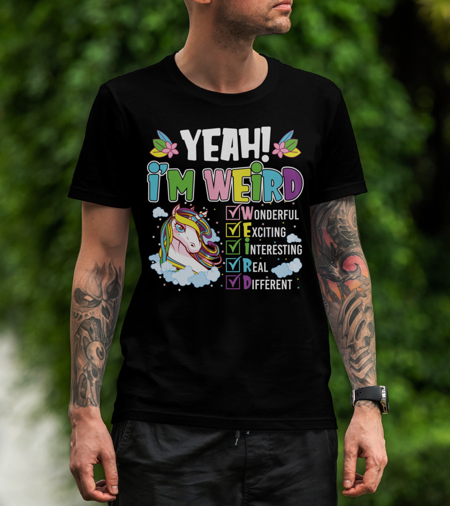 YEAH I'M WEIRD Wonderful Exciting Interesting Real Different Unicorn T-Shirt
