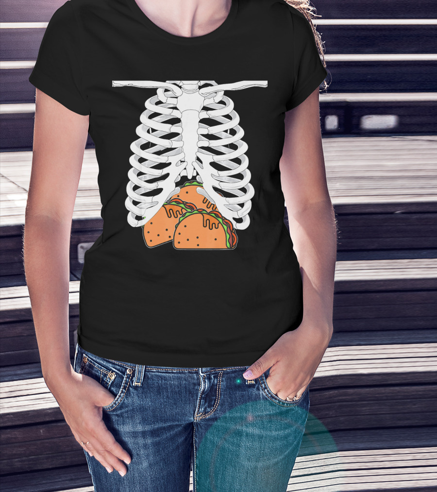 Halloween Taco Lover Skeleton Rib Cage Food Humor T-Shirt