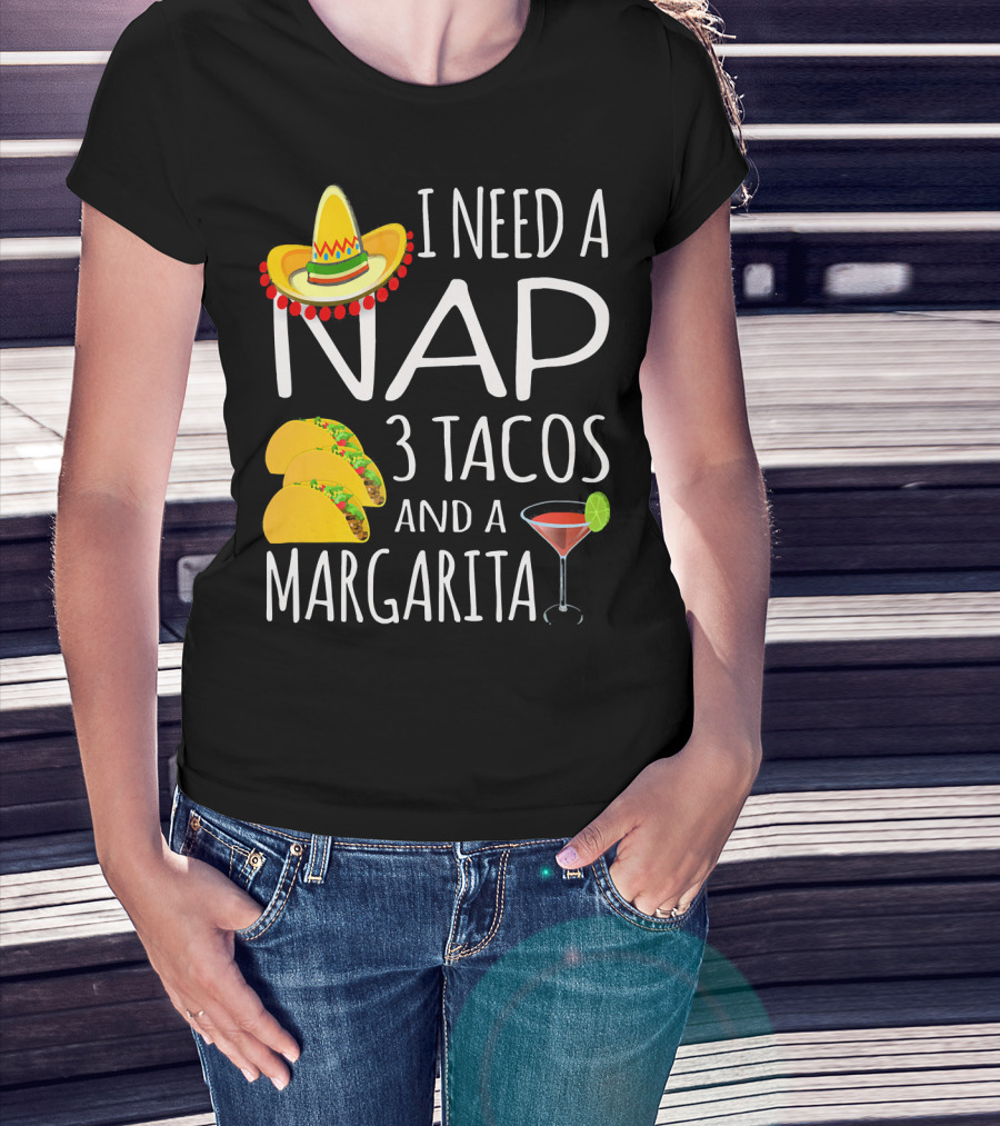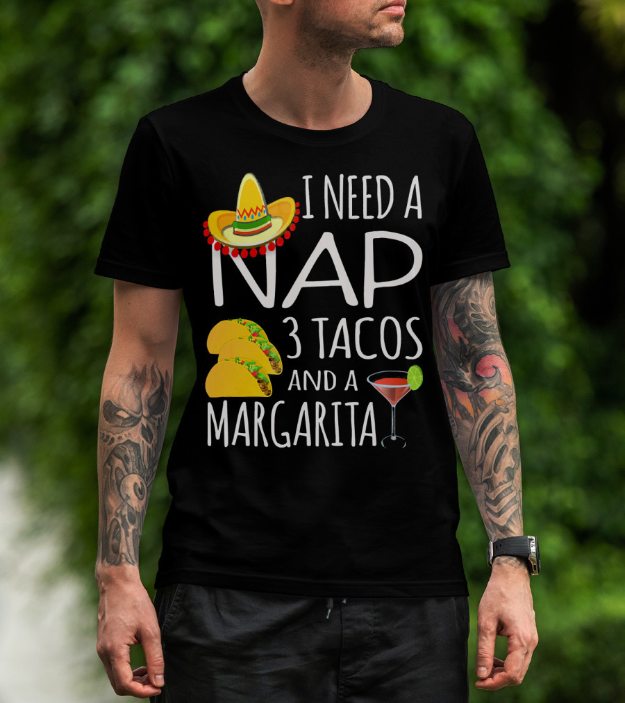 I Need A Nap 3 Tacos And A Margarita Sombrero And Drink T-Shirt