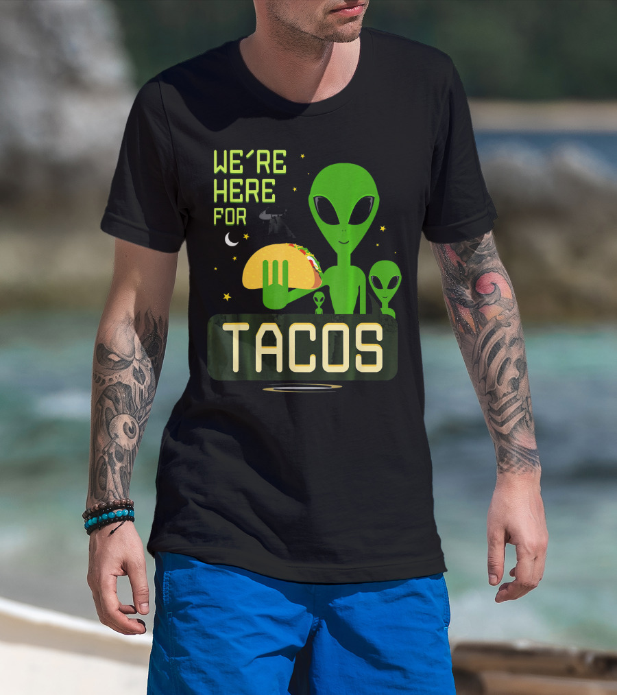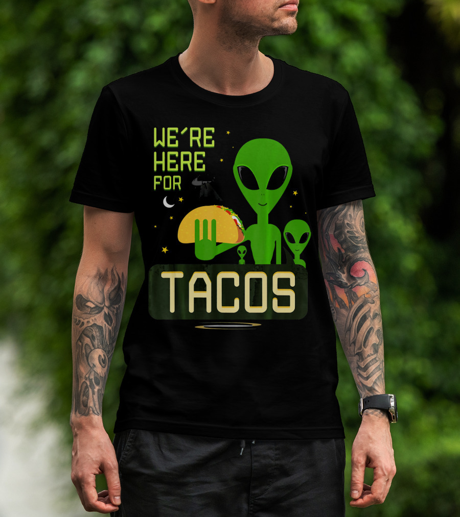 We're Here For Tacos Funny Alien UFO Holding Taco T-Shirt