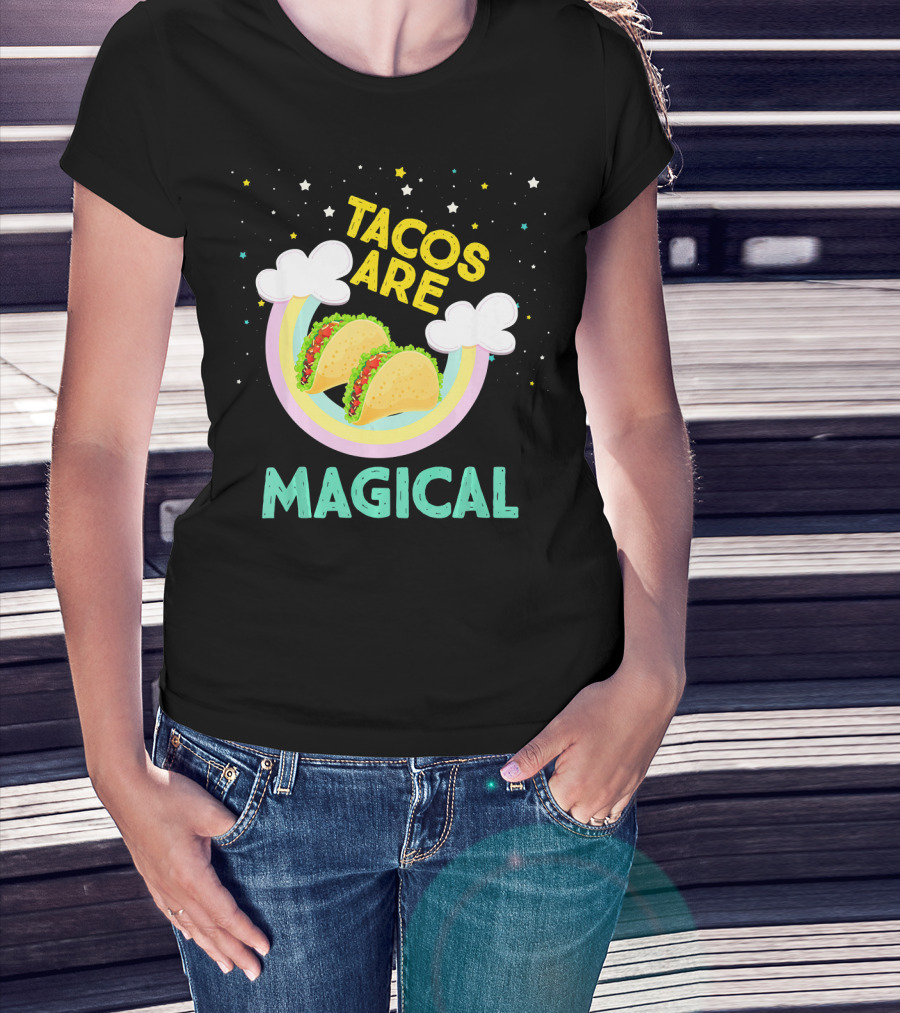 Magical Tacos Are Yummy Taco Lover Snack With Rainbow Clouds And Stars T-Shirt
