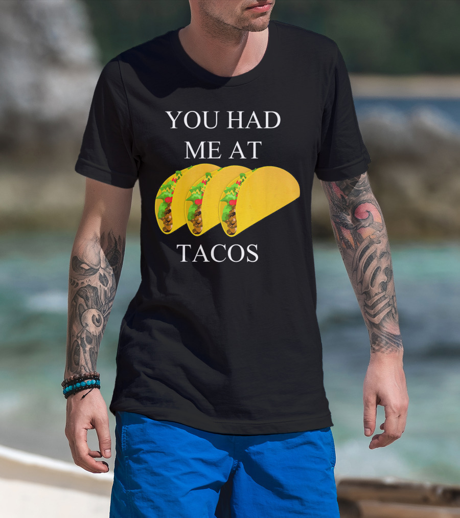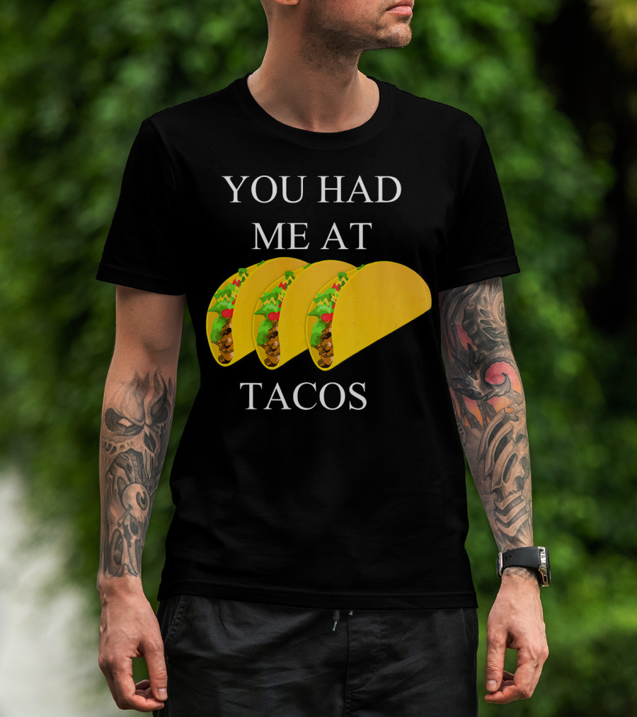The YOU HAD ME AT TACOS T-shirt is designed for everyday wear and a consistent fit. Fabric is pre-shrunk ring-spun cotton with durable stitching. See the size chart below for exact measurements.