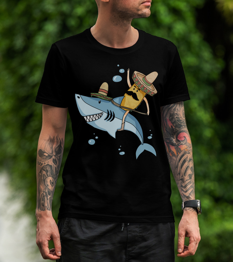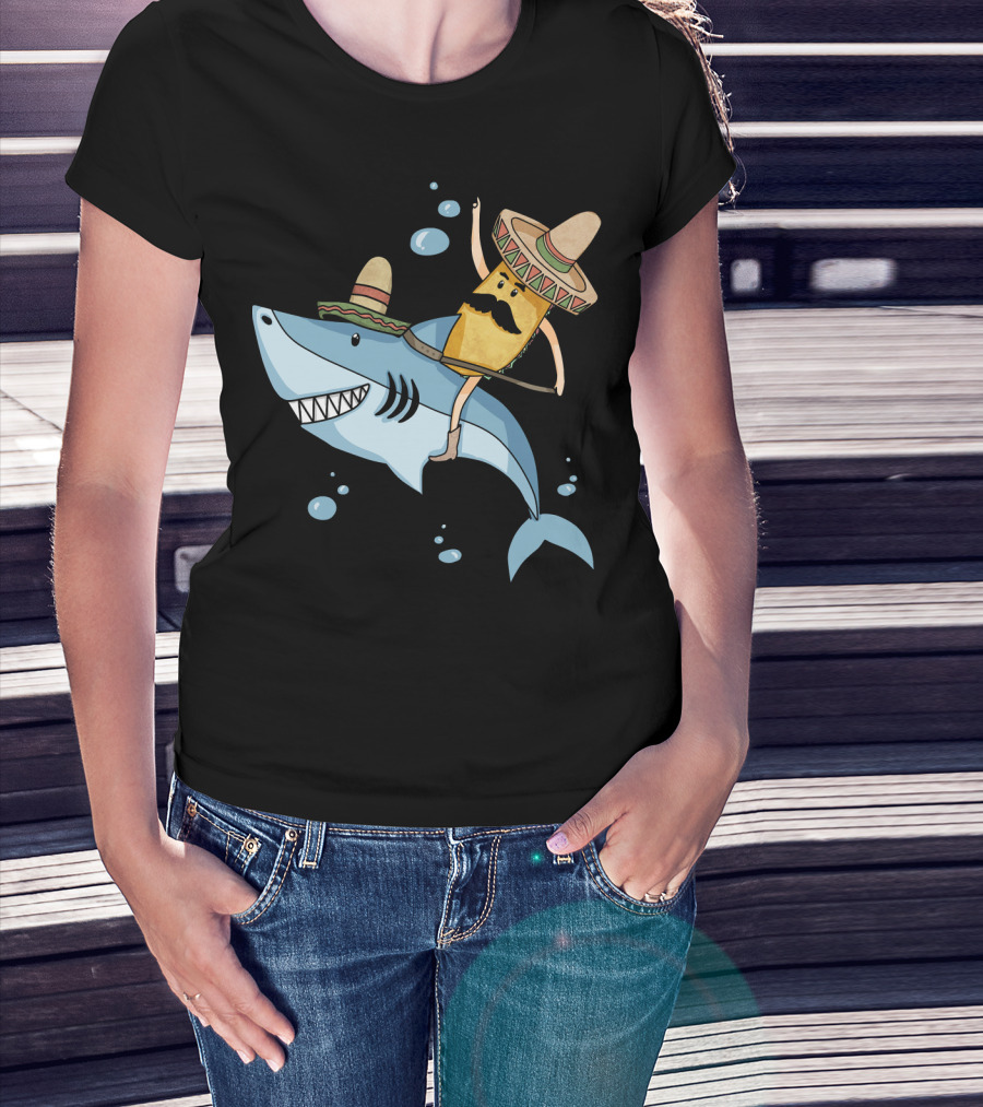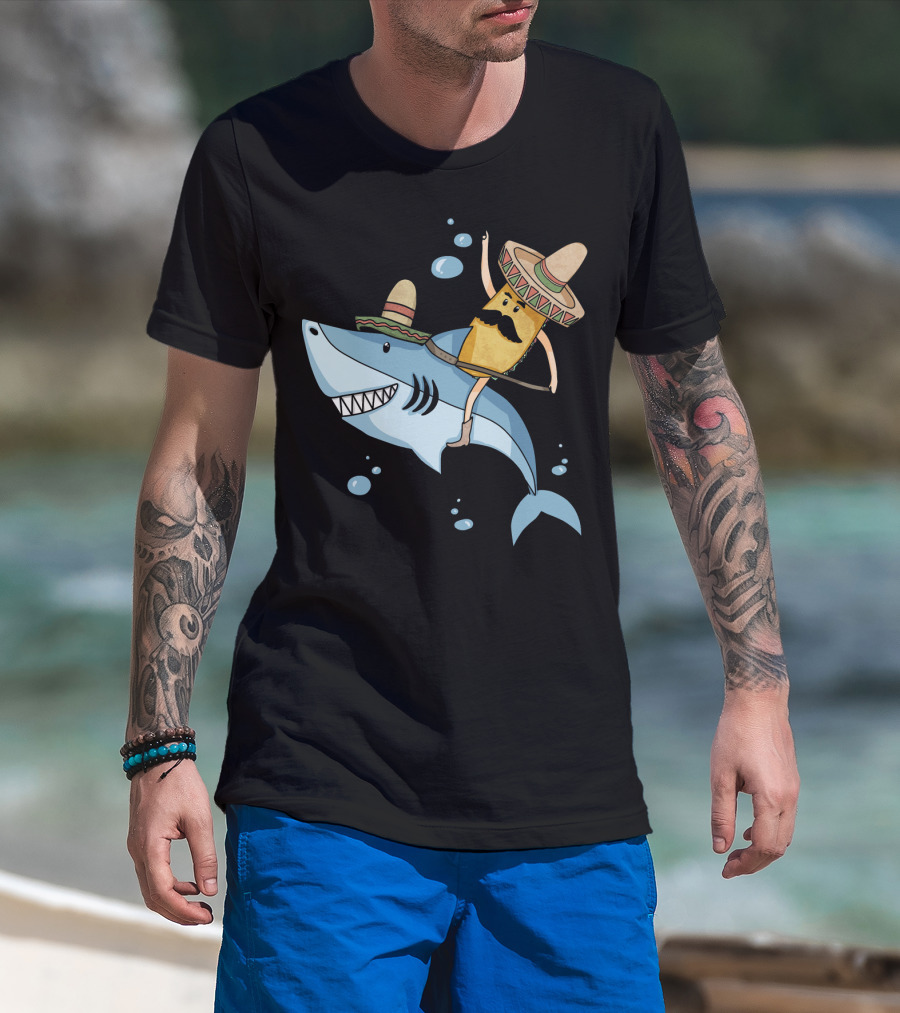 Taco Guy Riding Sombrero Shark Funny Mexican Style Long T-Shirt
