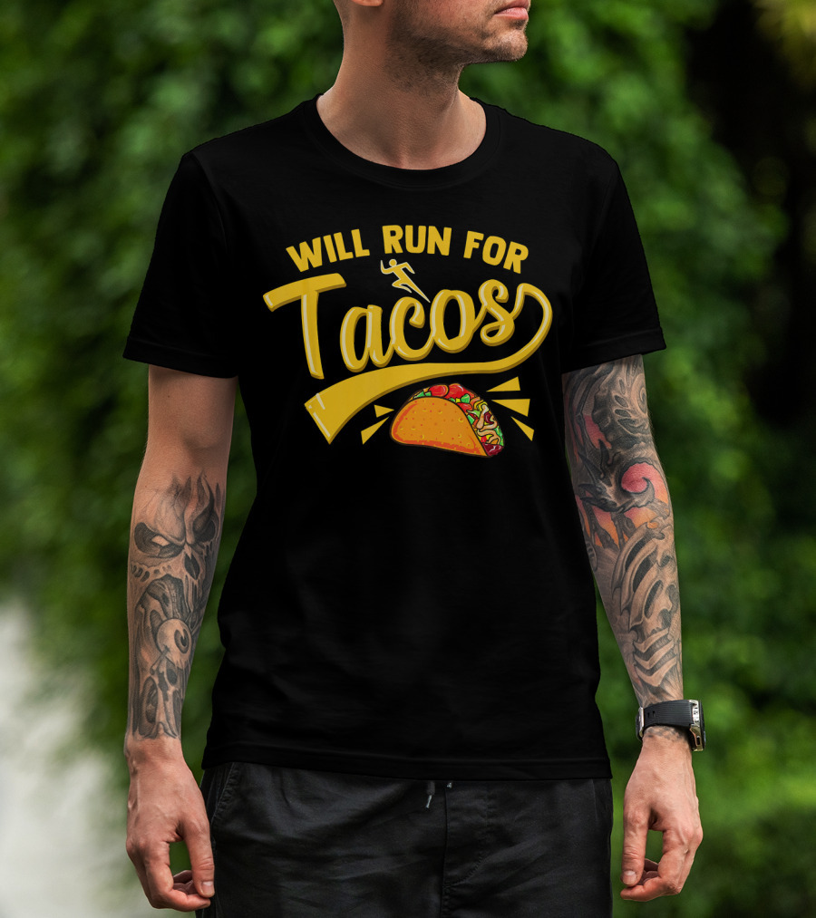 Will Run For Tacos Funny Running Mexican Taco T-Shirt