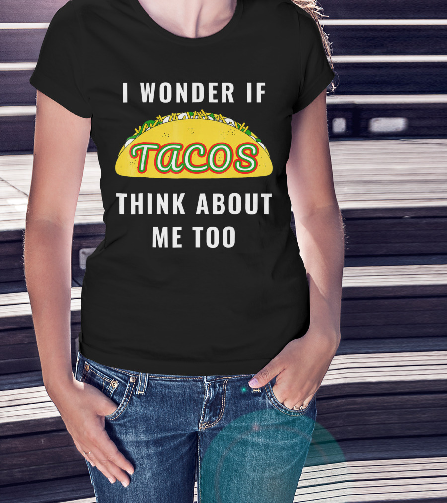 I Wonder If Tacos Think About Me Too Yellow Taco With Toppings T-Shirt