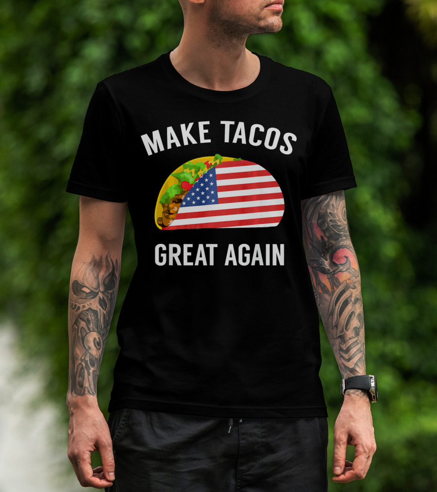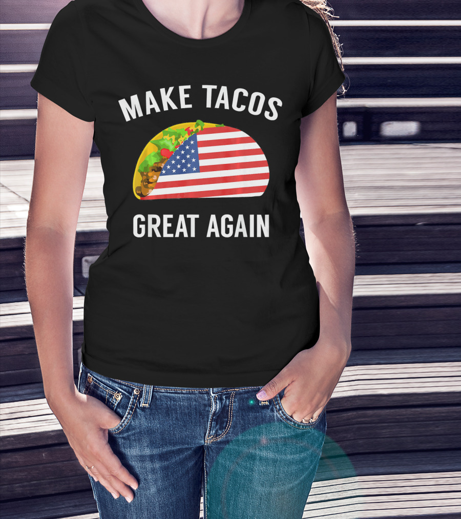Make Tacos Great Again Funny Taco With American Flag T-Shirt