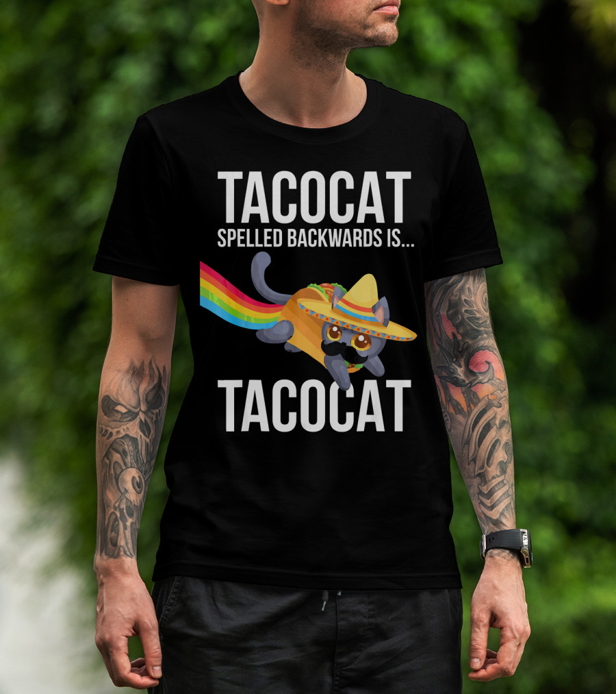 The Taco Cat Spelled Backwards Is Tacocat Rainbow Sombrero Palindrome T-shirt is designed for everyday wear and a consistent fit. Fabric is pre-shrunk ring-spun cotton with durable stitching. See the size chart below for exact measurements.