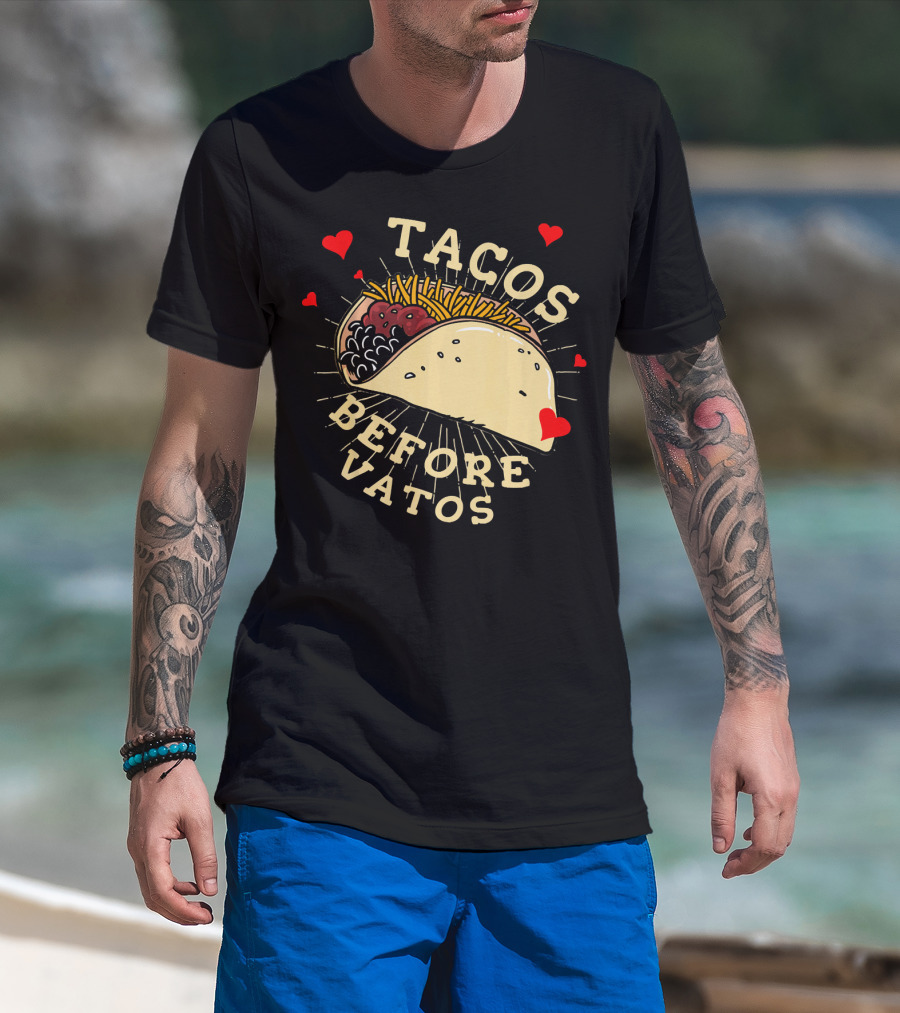 Tacos Before Vatos Funny Gym Food With Hearts T-Shirt