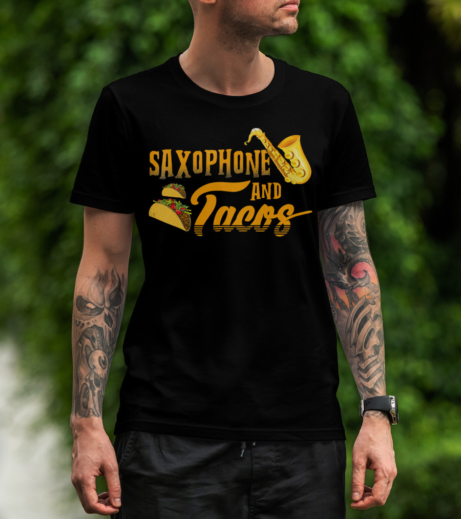 The Saxophone and Tacos Funny T-shirt is designed for everyday wear and a consistent fit. Fabric is pre-shrunk ring-spun cotton with durable stitching. See the size chart below for exact measurements.