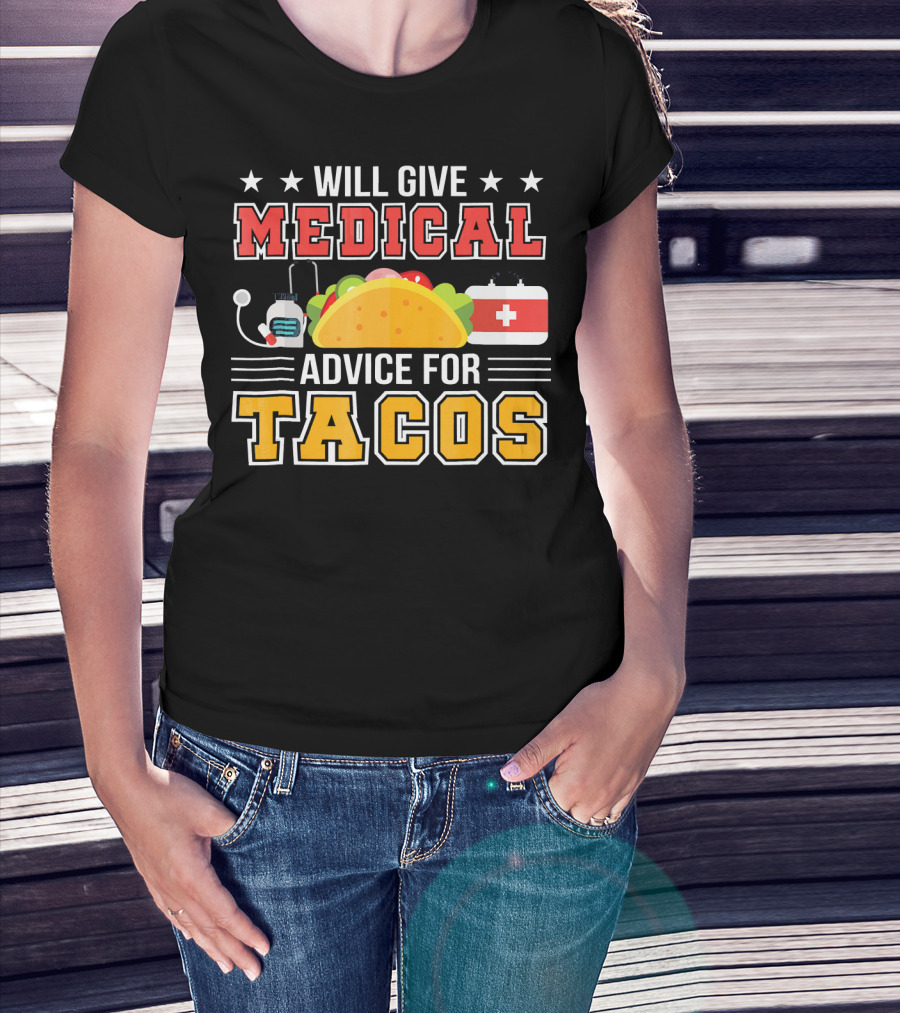 Will Give Medical Advice For Tacos With Stethoscope And First Aid Symbols T-Shirt
