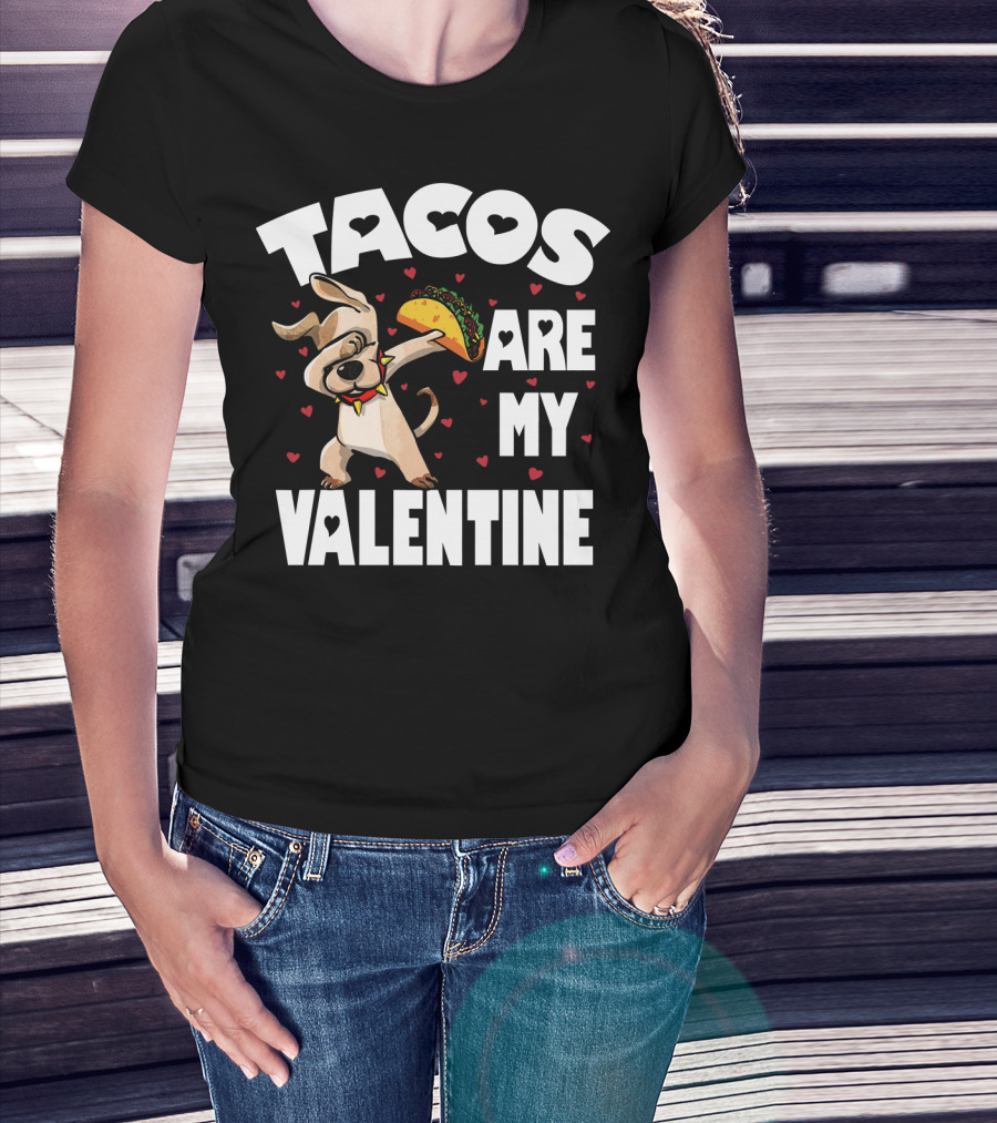 Tacos Are My Valentine Dabbing Dog With Hearts And Taco T-Shirt