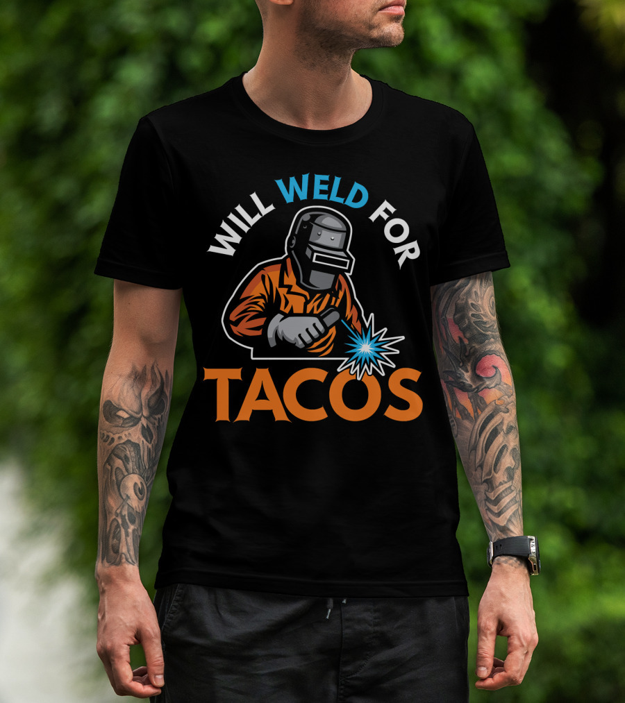 Will Weld For Tacos Funny Welder Welding T-Shirt Design Image T-Shirt