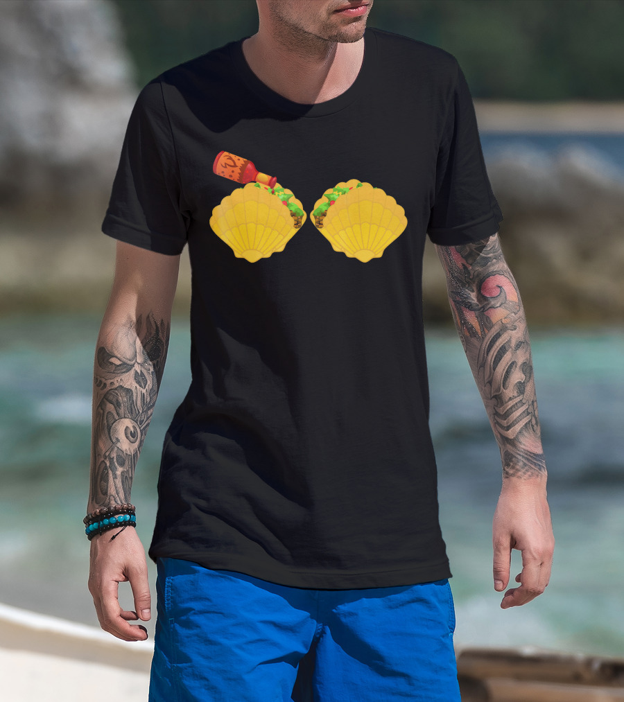 Mermaid Shell Taco Bra With Hot Sauce Bottle And Spicy Chi T-Shirt