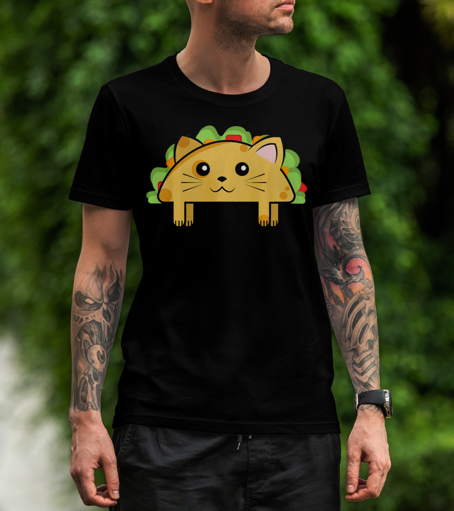 The Funny Tacocat Taco and Cat Cartoon Playful Mashup T-shirt is designed for everyday wear and a consistent fit. Fabric is pre-shrunk ring-spun cotton with durable stitching. See the size chart below for exact measurements.