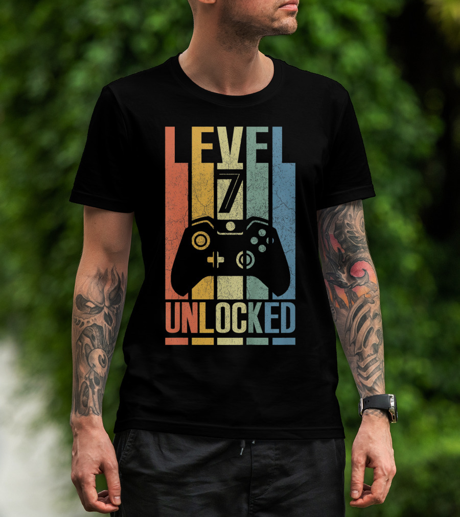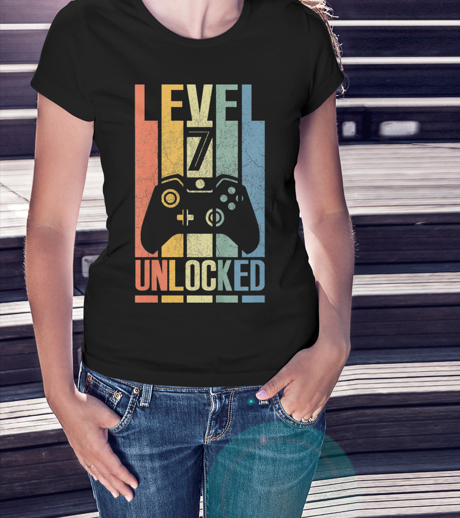 Level 7 Unlocked Video Game Controller Retro Kids T-Shirt