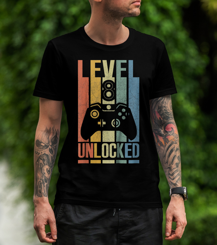 Level 8 Unlocked Video Game Controller Kids Retro Gaming T-Shirt