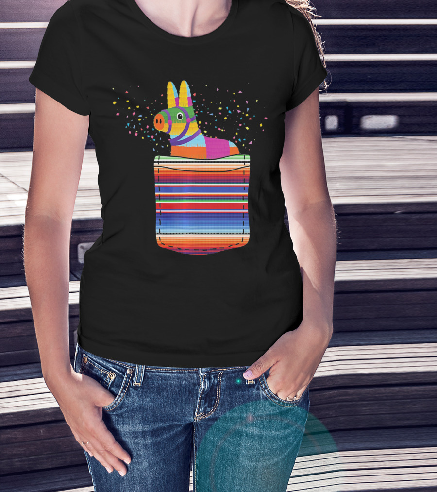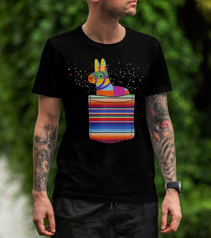 Pocket Pinata Serape Fiesta Blanket Confetti Burst T-Shirt