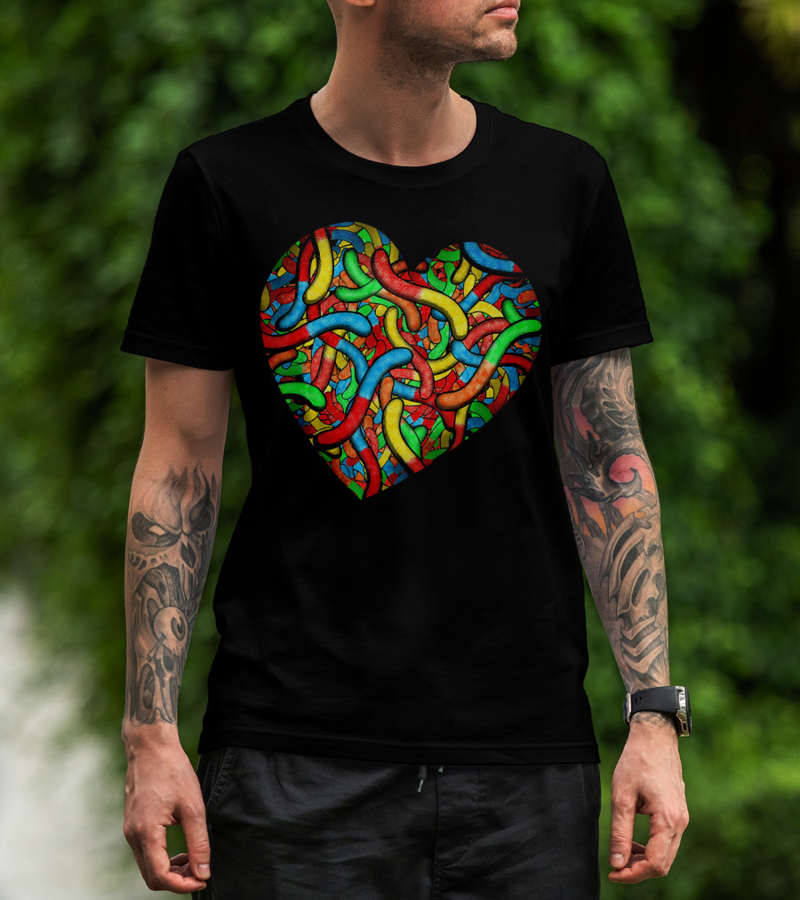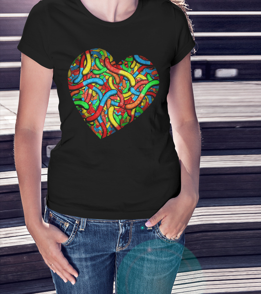 90s Candy Heart Sour Gummy Worms Girls T-Shirt