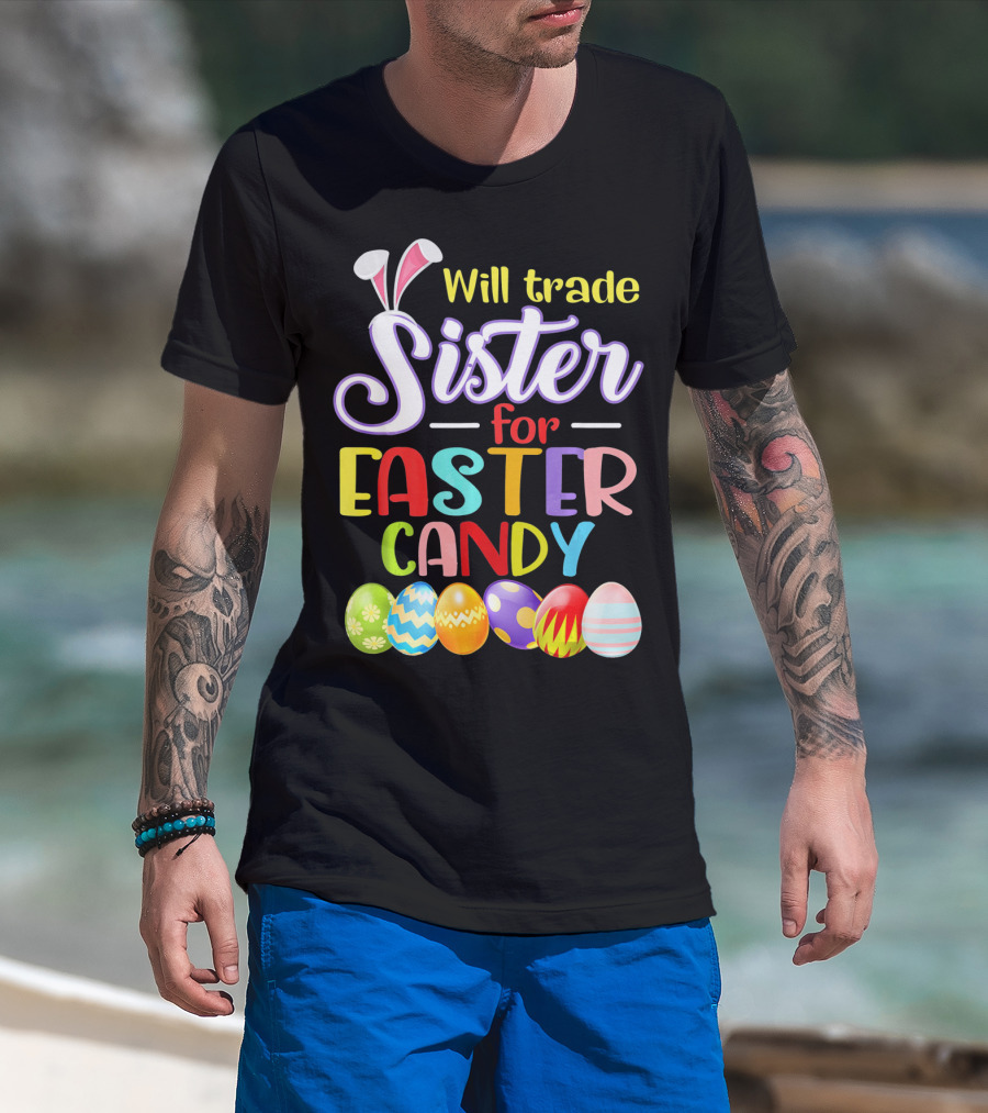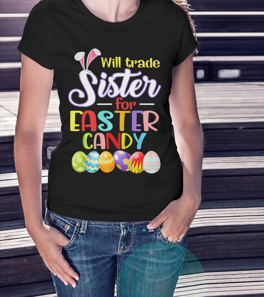 Will Trade Sister For Easter Candy Colorful Eggs And Bunny Ears T-Shirt