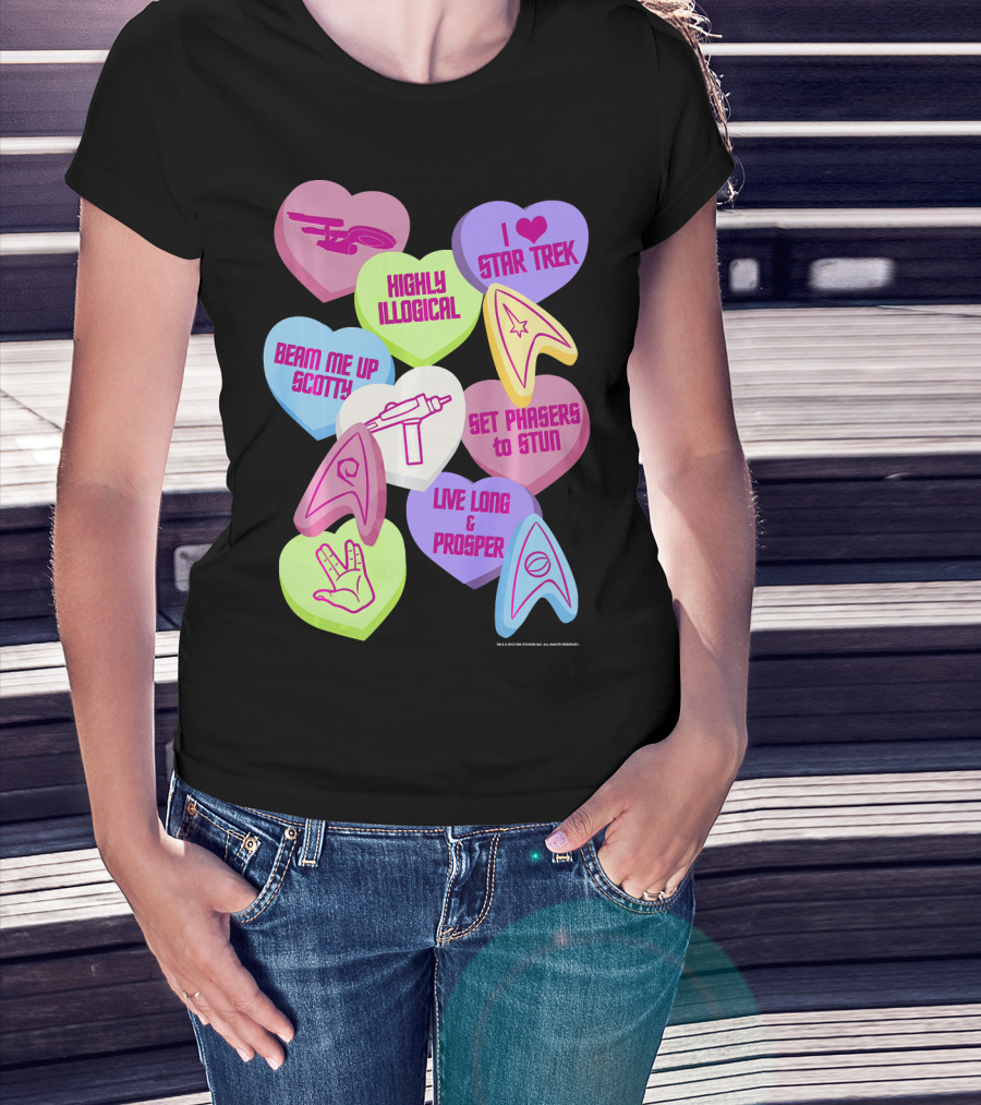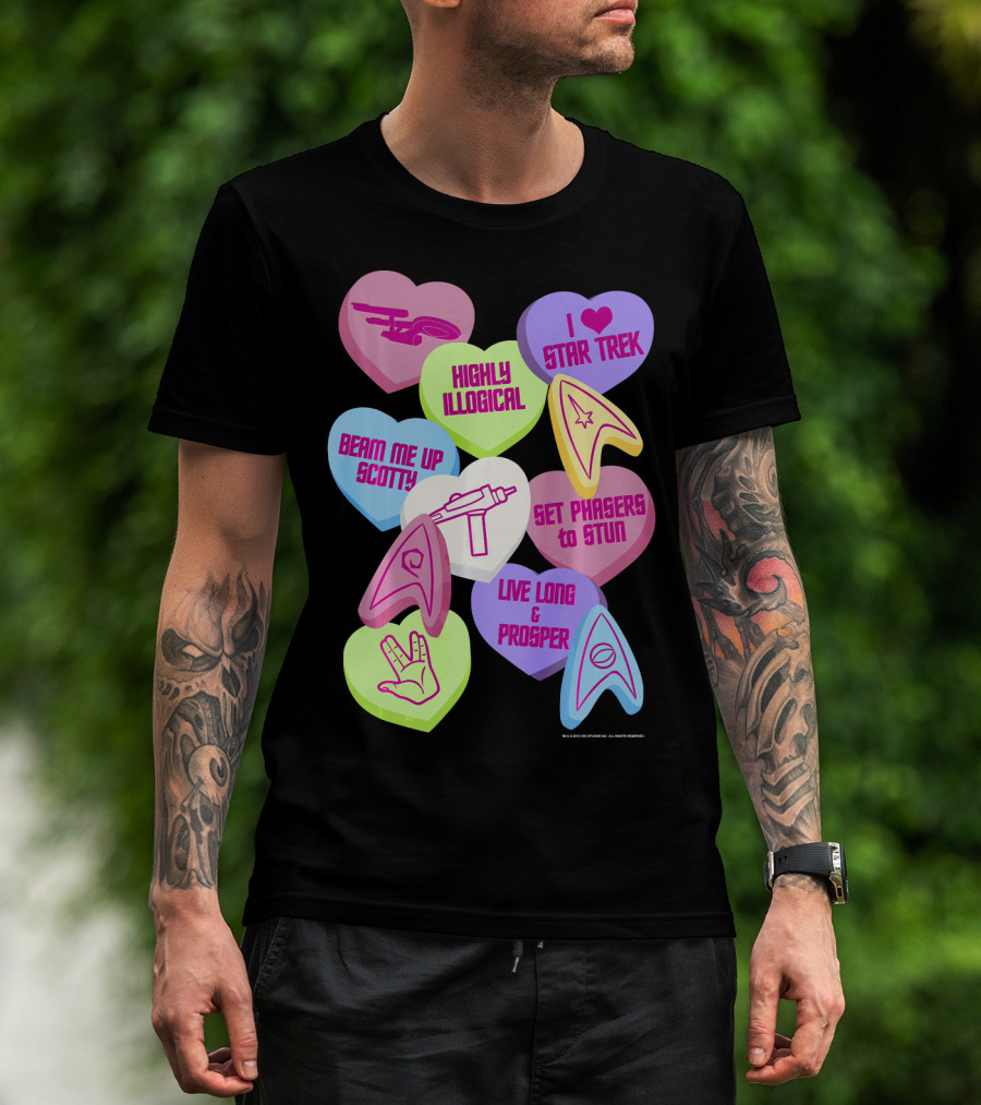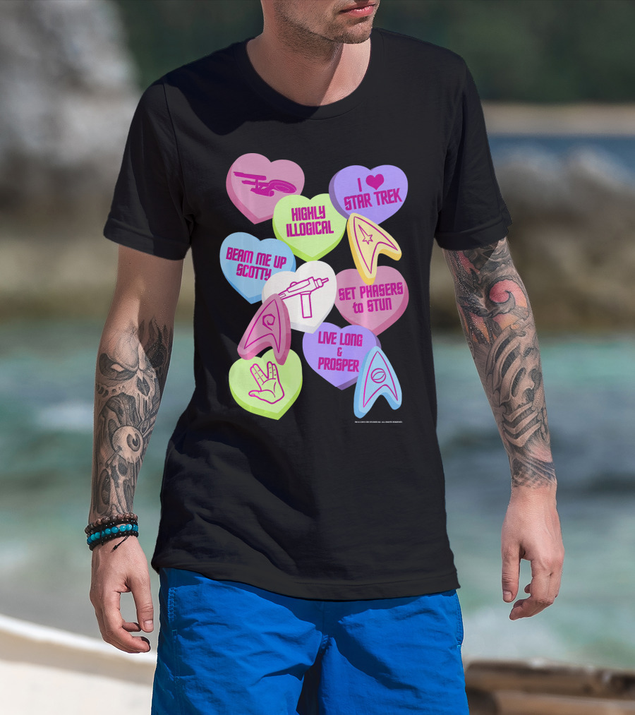 Beam Me Up Scotty Star Trek Candy Hearts Valentines Day Live Long And Prosper T-Shirt