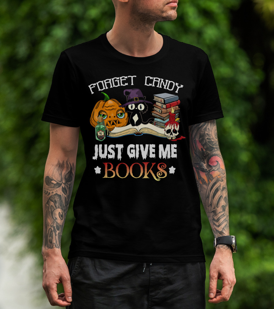 Forget Candy Just Give Me Books Pumpkin Cat Witch Skull Potion T-Shirt