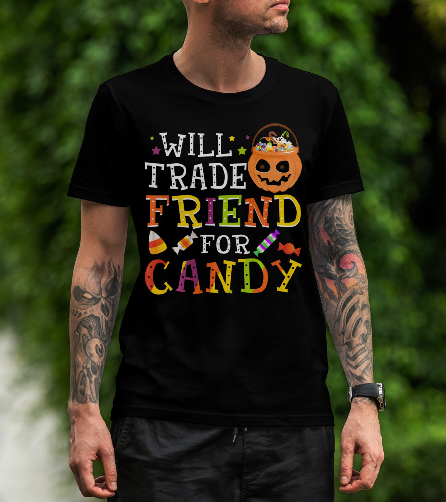 Will Trade Friend For Candy Halloween Co Trick-or-Treat Jack-o'-Lantern And Candy Icon Pumpkin T-Shirt