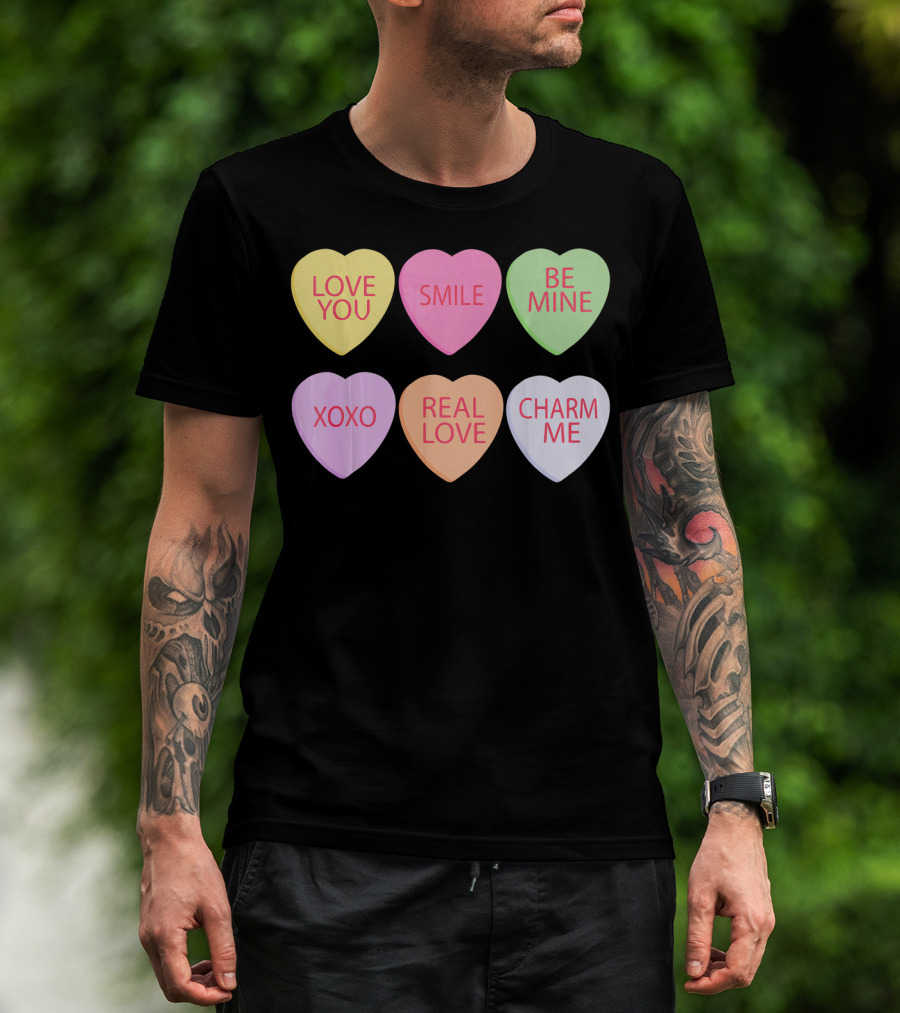 The Valentines Sweetheart Cute Heart Love You Smile Be Mine XOXO Real Love Charm Me T-shirt is designed for everyday wear and a consistent fit. Fabric is pre-shrunk ring-spun cotton with durable stitching. See the size chart below for exact measurements.