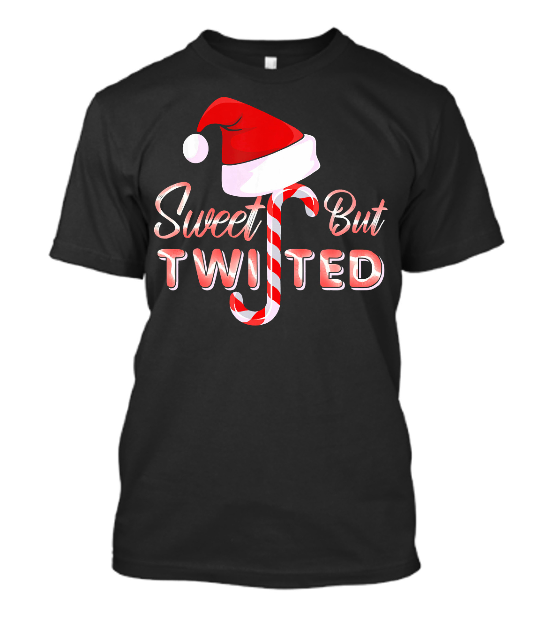 The Sweet But Twisted Candy Cane Santa Hat T-shirt is designed for everyday wear and a consistent fit. Fabric is pre-shrunk ring-spun cotton with durable stitching. See the size chart below for exact measurements.