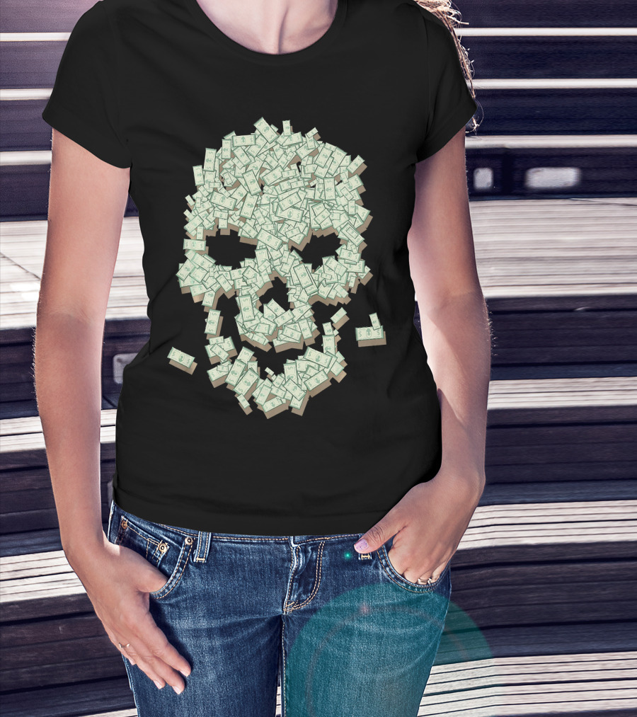 The Dollar Skull Skeleton Money Stack T-shirt is designed for everyday wear and a consistent fit. Fabric is pre-shrunk ring-spun cotton with durable stitching. See the size chart below for exact measurements.