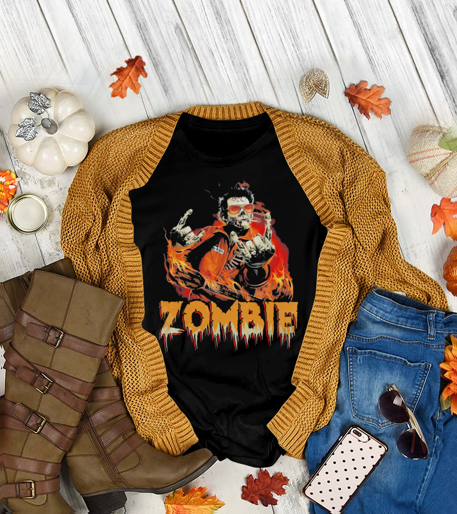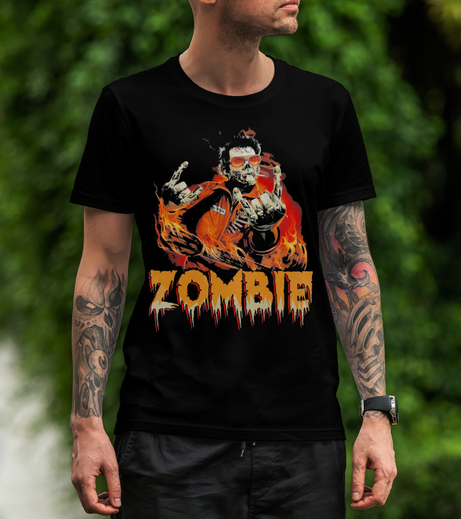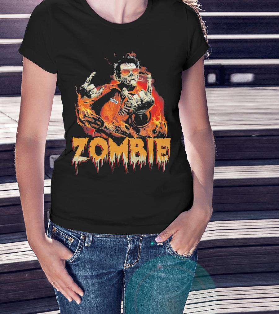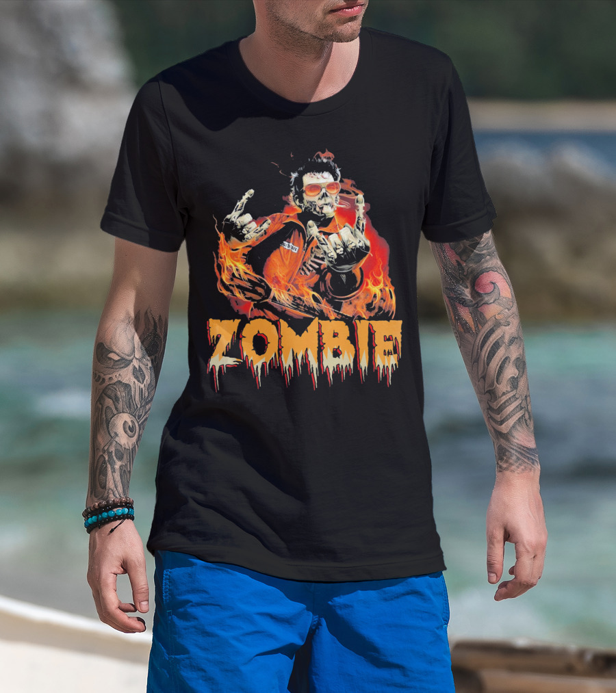 Zombie Metal Living Dead Rock On Fire T-Shirt
