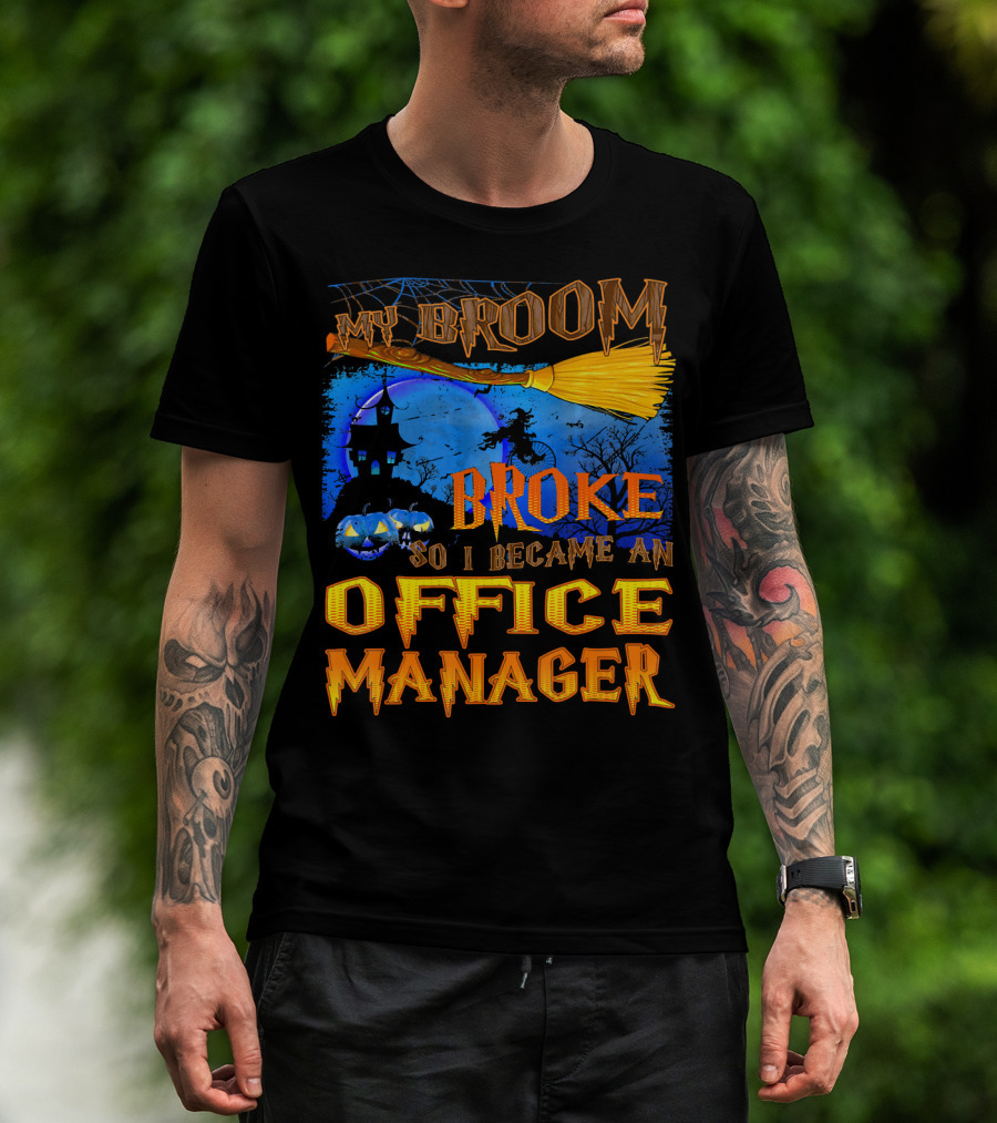 The My Broom Broke So I Became an Office Manager T-shirt is designed for everyday wear and a consistent fit. Fabric is pre-shrunk ring-spun cotton with durable stitching. See the size chart below for exact measurements.