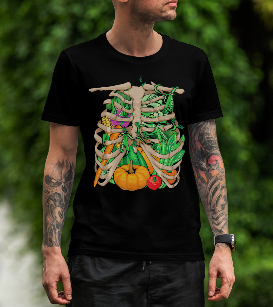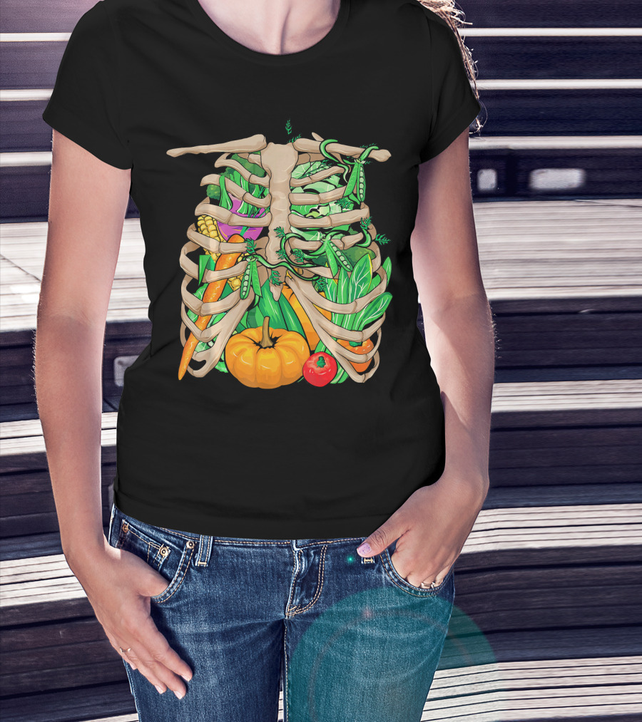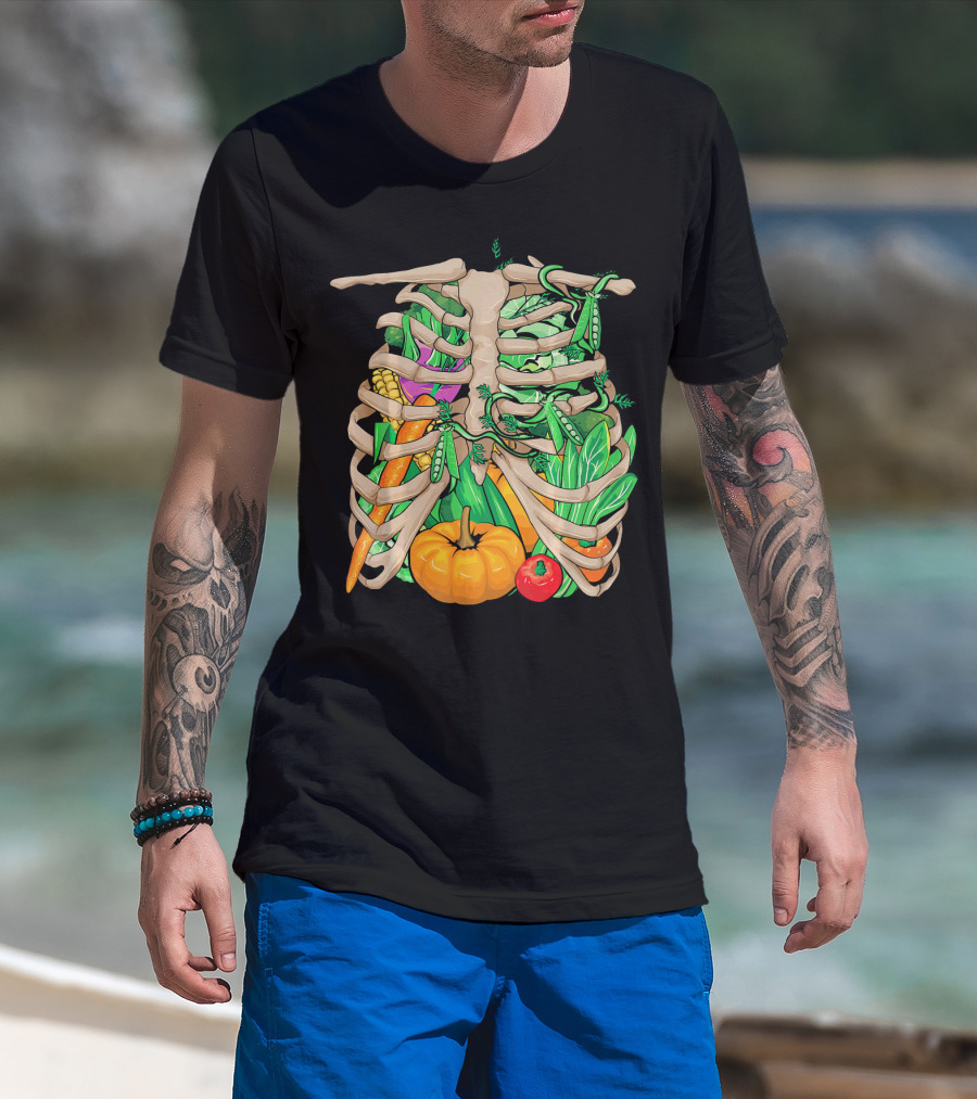 Cool Vegetable Skeleton Halloween Costume Vegetables Ribs Pumpkin Peas Corn Carrot T-Shirt