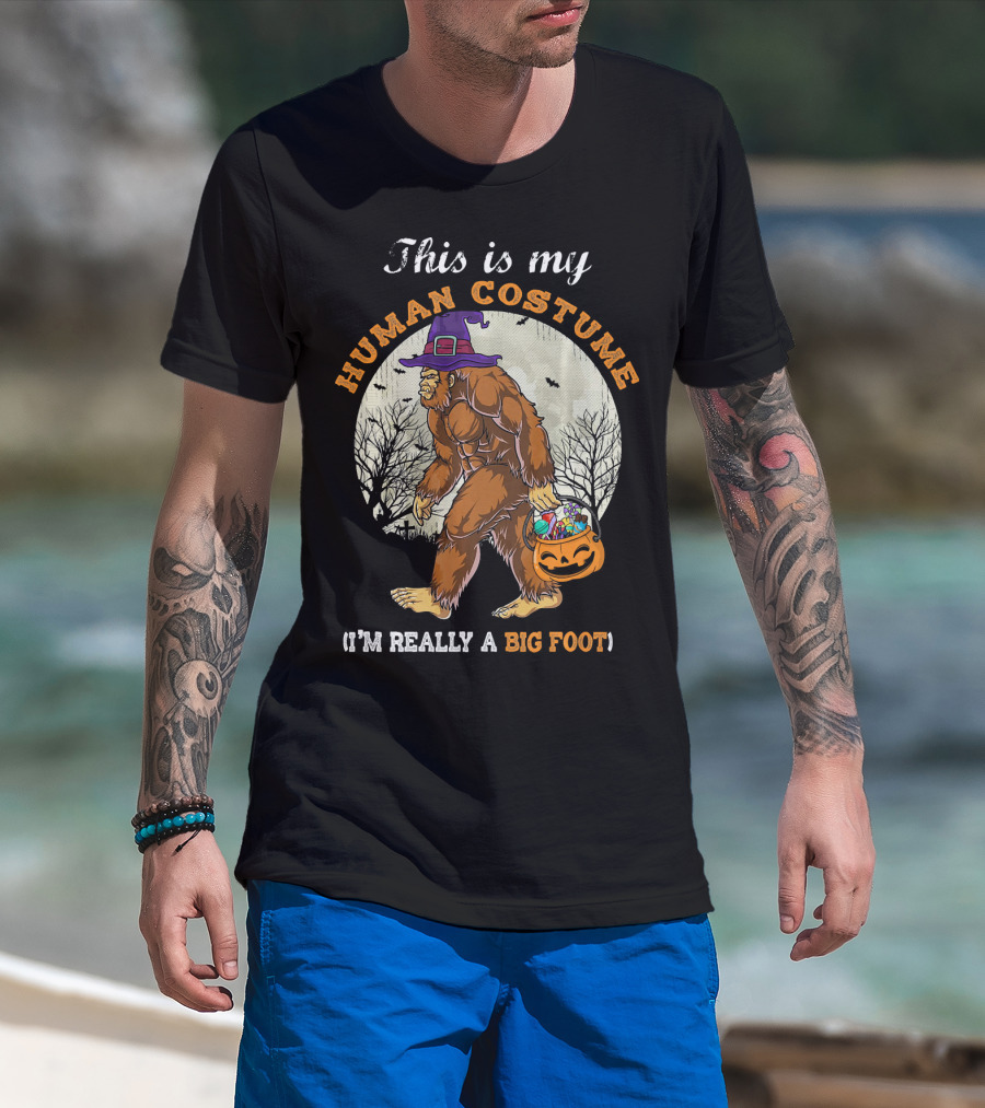 This Is My Human Costume I'm Really A Bigfoot Halloween Sasquatch With Candy Bucket T-Shirt