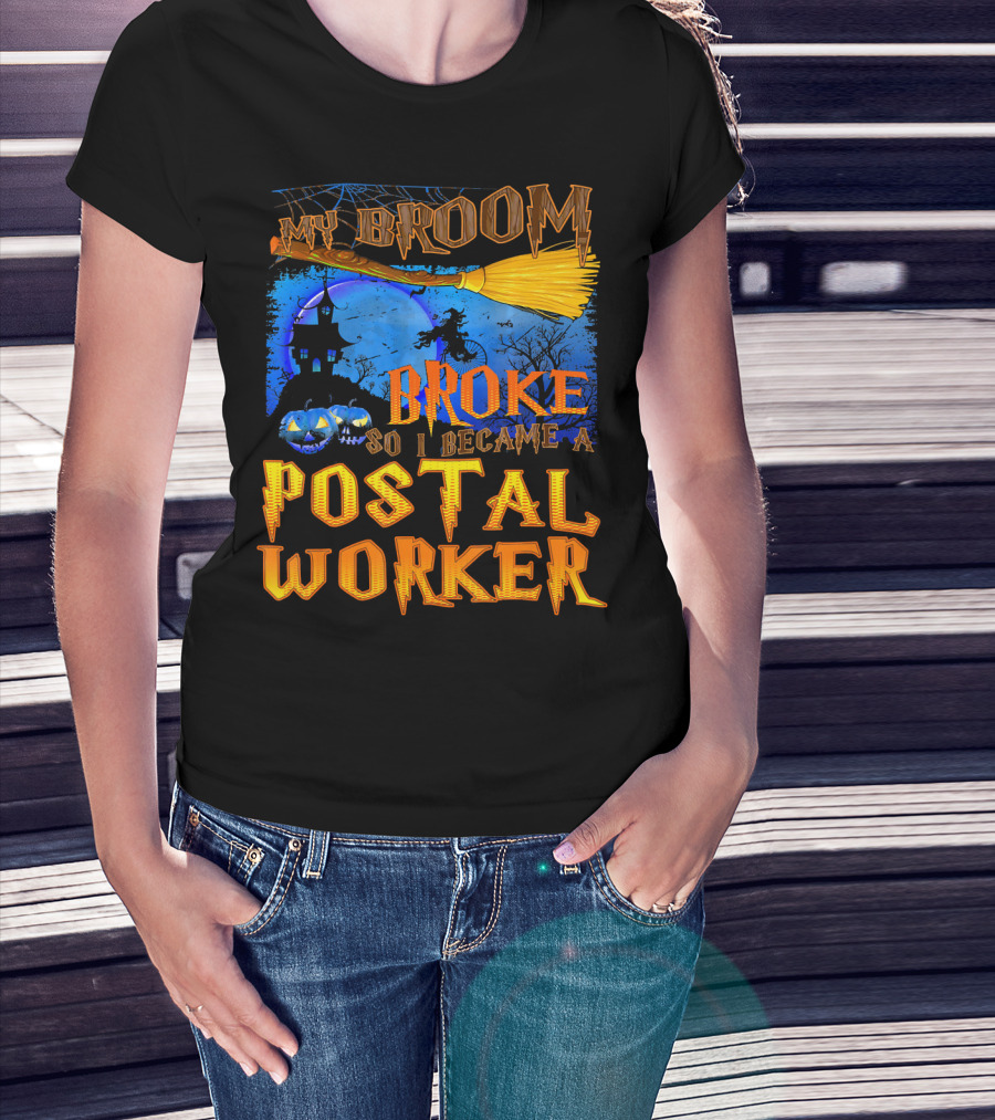 My Broom Broke So I Became A Postal Worker Halloween Witch Castle Pumpkins T-Shirt