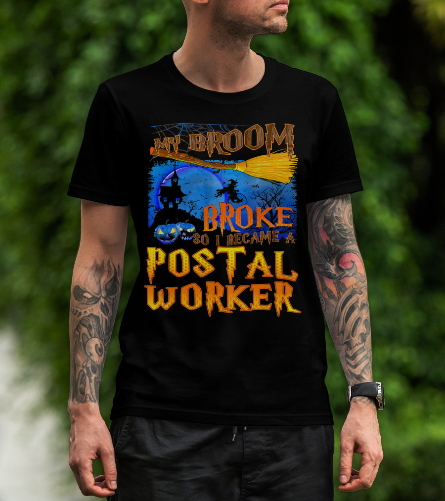 The My Broom Broke So I Became A Postal Worker Halloween Witch Castle Pumpkins T-shirt is designed for everyday wear and a consistent fit. Fabric is pre-shrunk ring-spun cotton with durable stitching. See the size chart below for exact measurements.