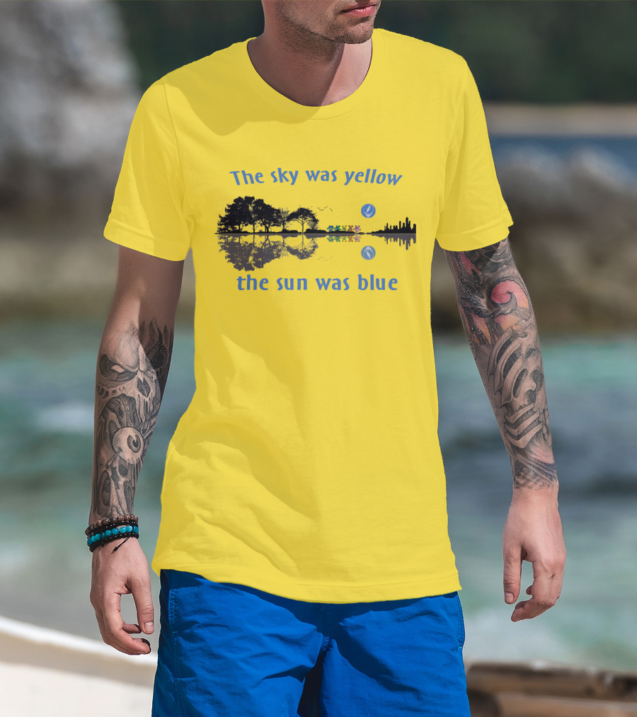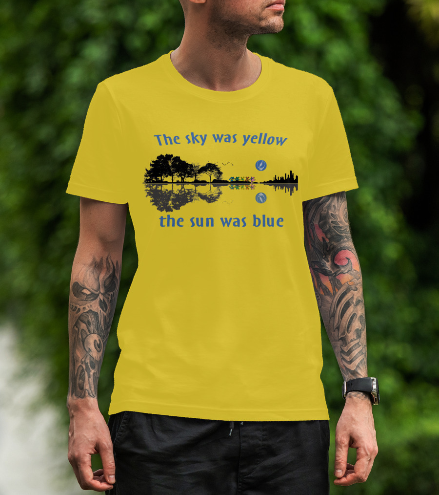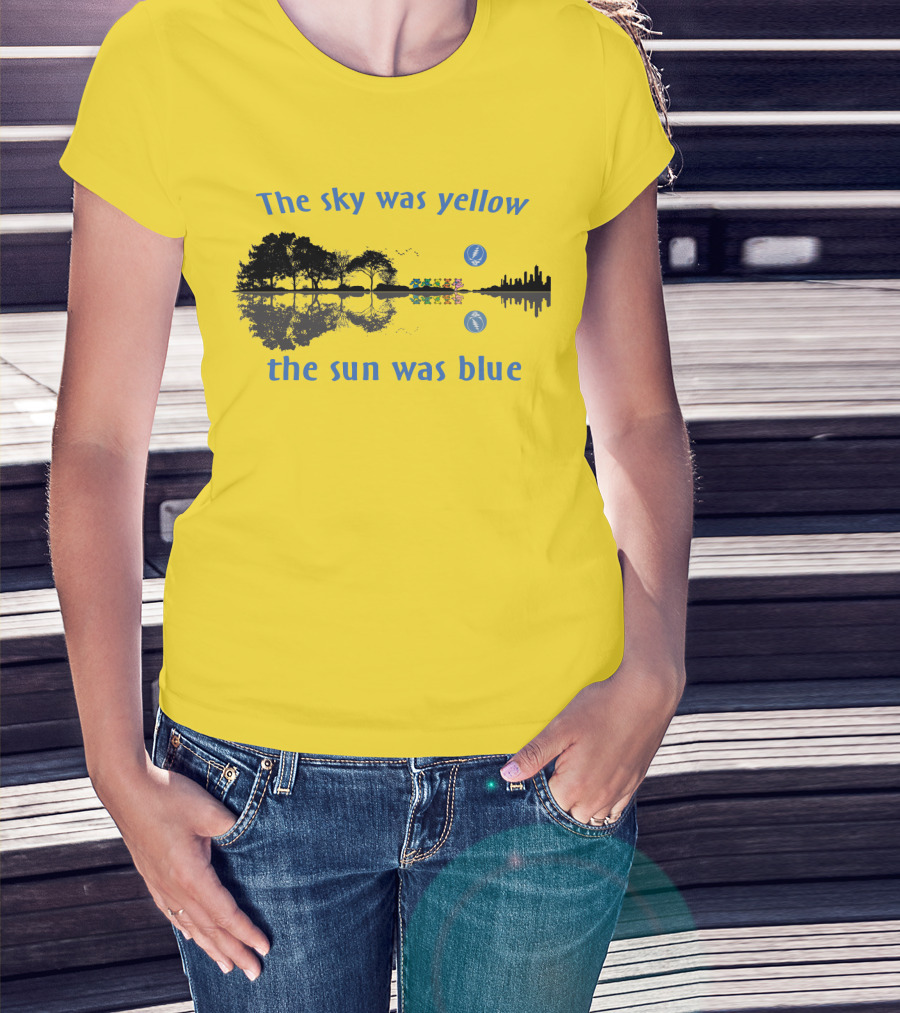 The Sky Was Yellow The Sun Was Blue Reflective Landscape And City Skyline T-Shirt