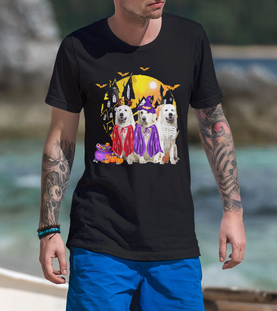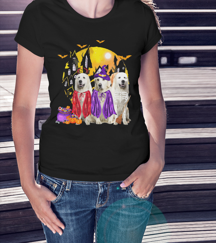 Great Pyrenees Dog Family Of Three Halloween Costumes Moonlit Night T-Shirt