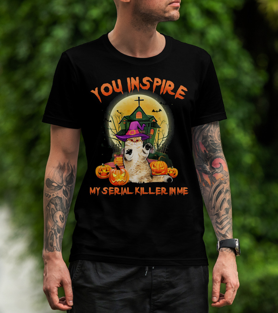 You Inspire My Serial Killer In Me Funny Cat Halloween Costume T-Shirt