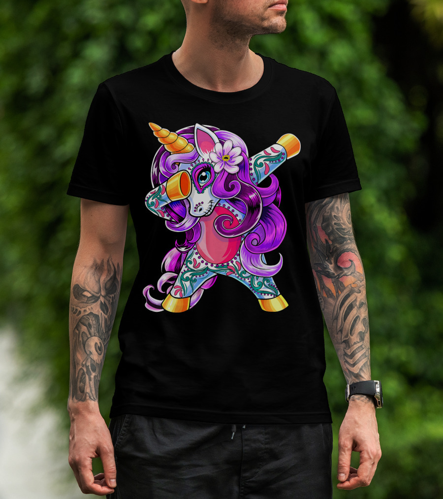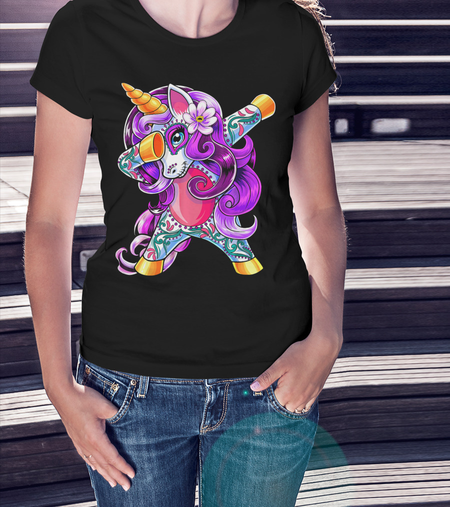 Dabbing Unicorn Day Of The Dead Sugar Skull T-Shirt
