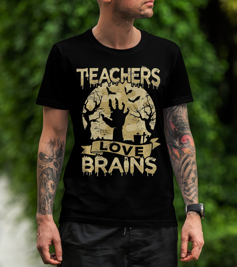Teachers Love Brains Halloween Zombie Graveyard T-Shirt